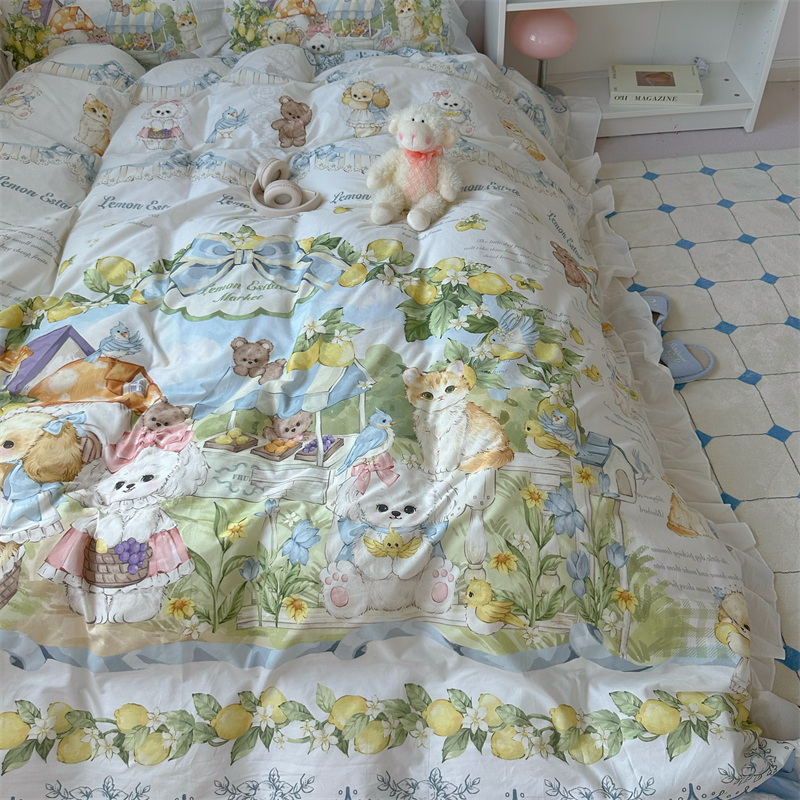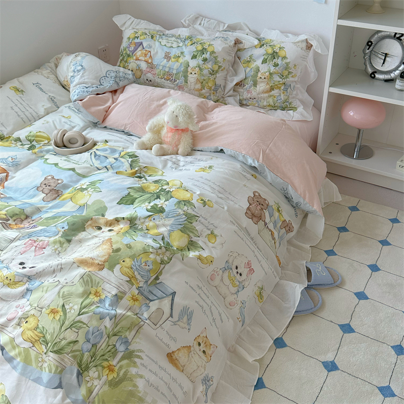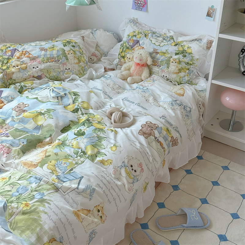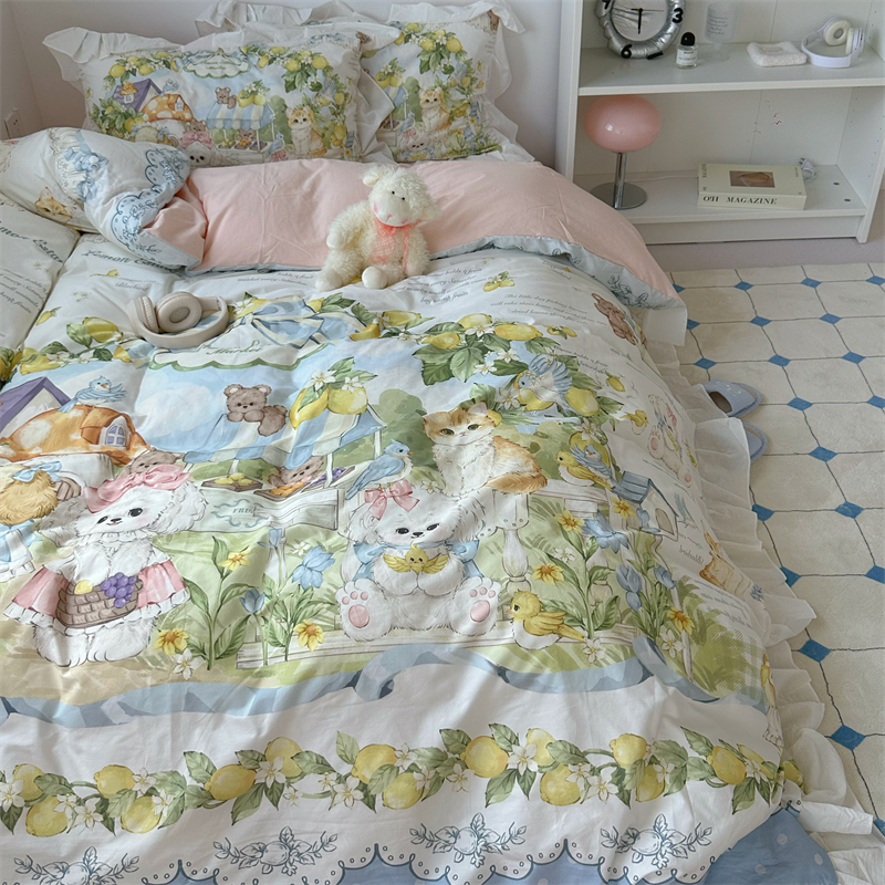 梨梦 柠檬树下 lolita纯棉水洗棉四件套全棉床单被套床笠床上用品