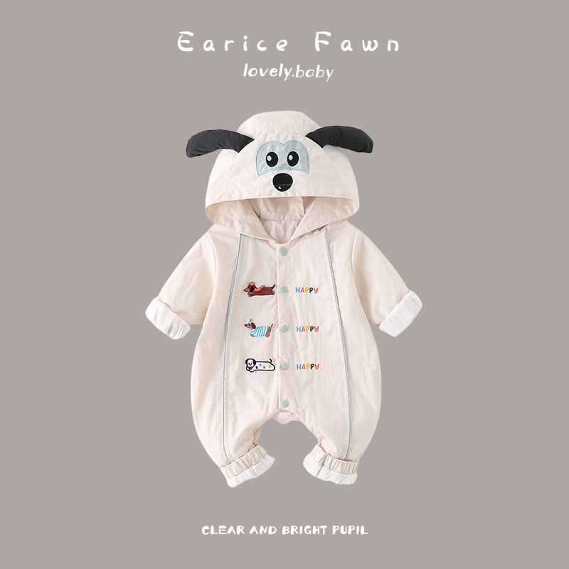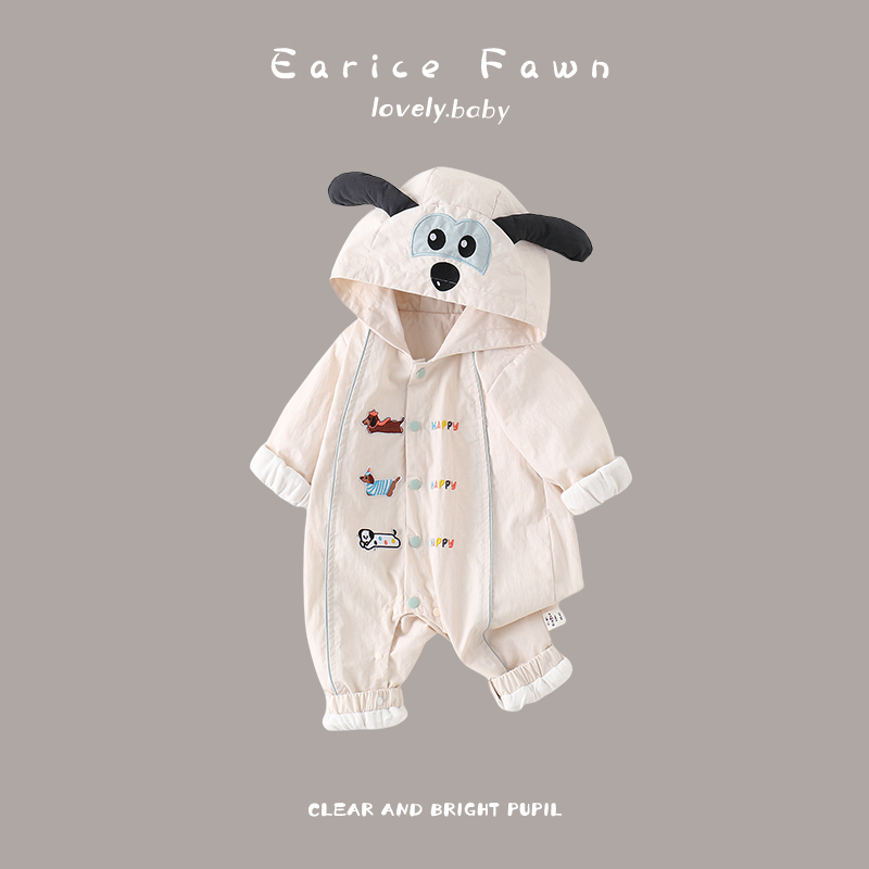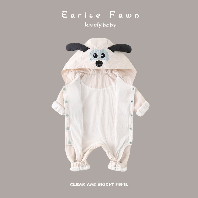 婴儿秋季哈衣男女宝宝长袖连体衣外穿超萌可爱爬服连帽抱衣周岁服