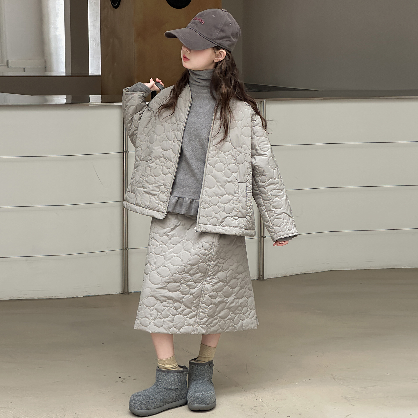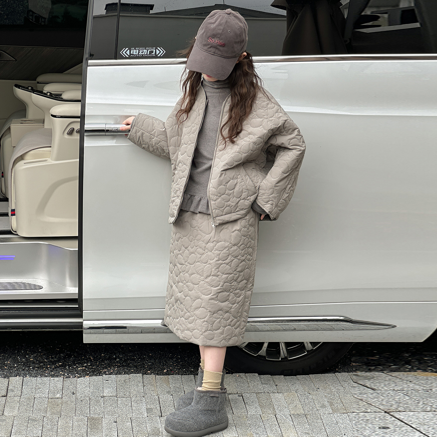 女童秋冬裙子套装洋气韩范潮流加厚棉衣儿童绗棉半身裙休闲两件套