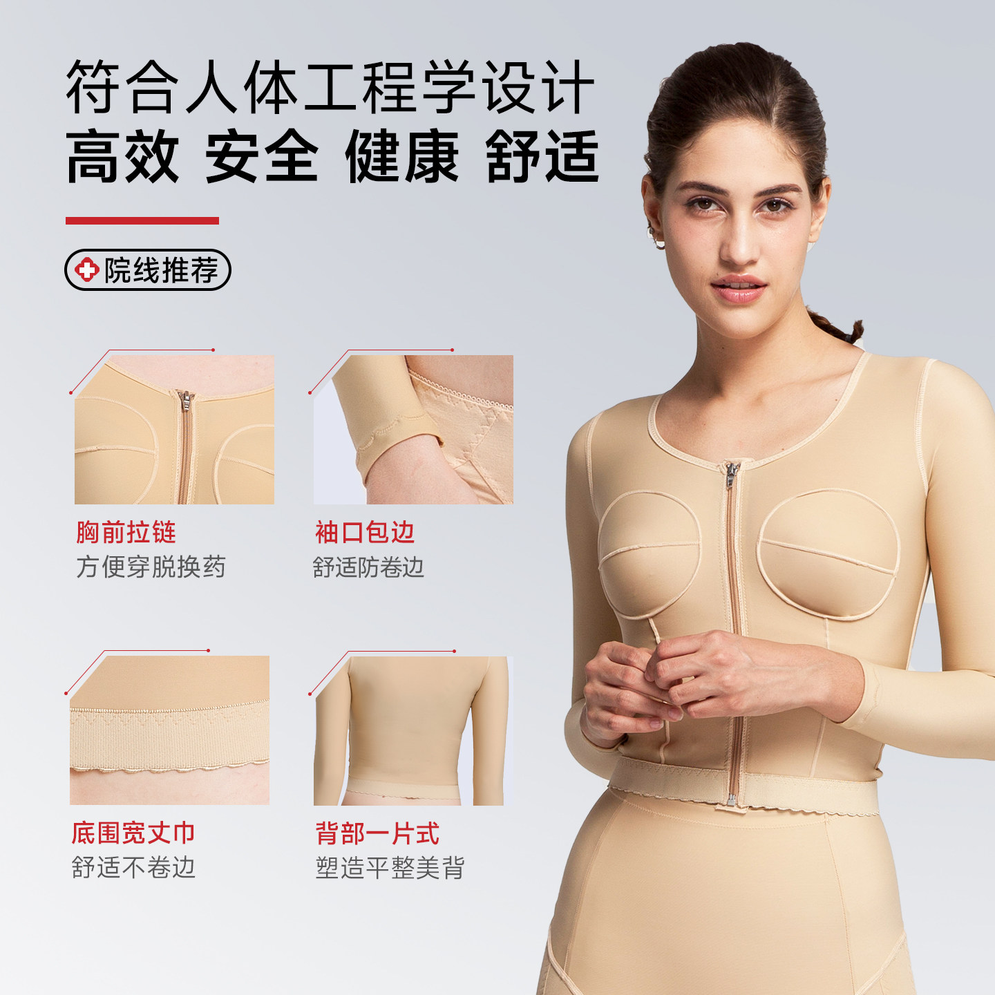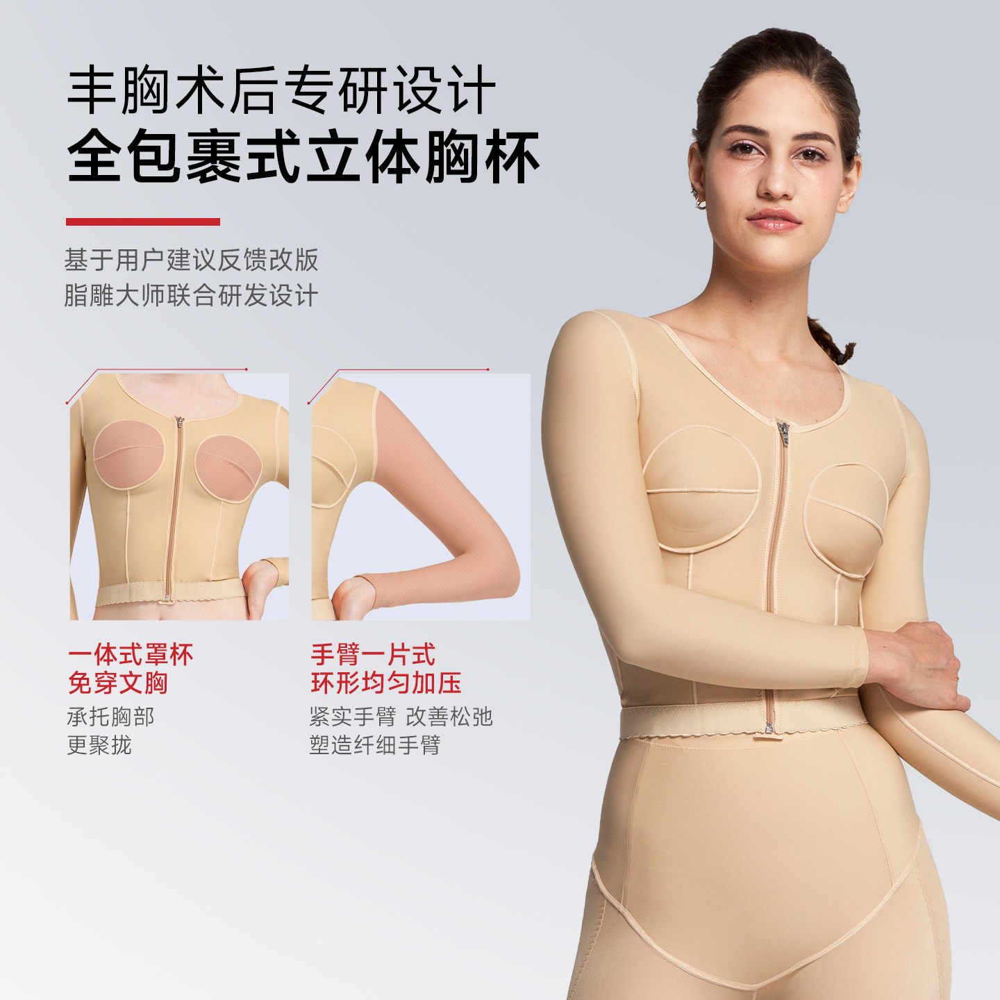 手臂肩背吸脂隆胸丰胸填充假体固定术后医用塑形有杯长袖塑身内衣