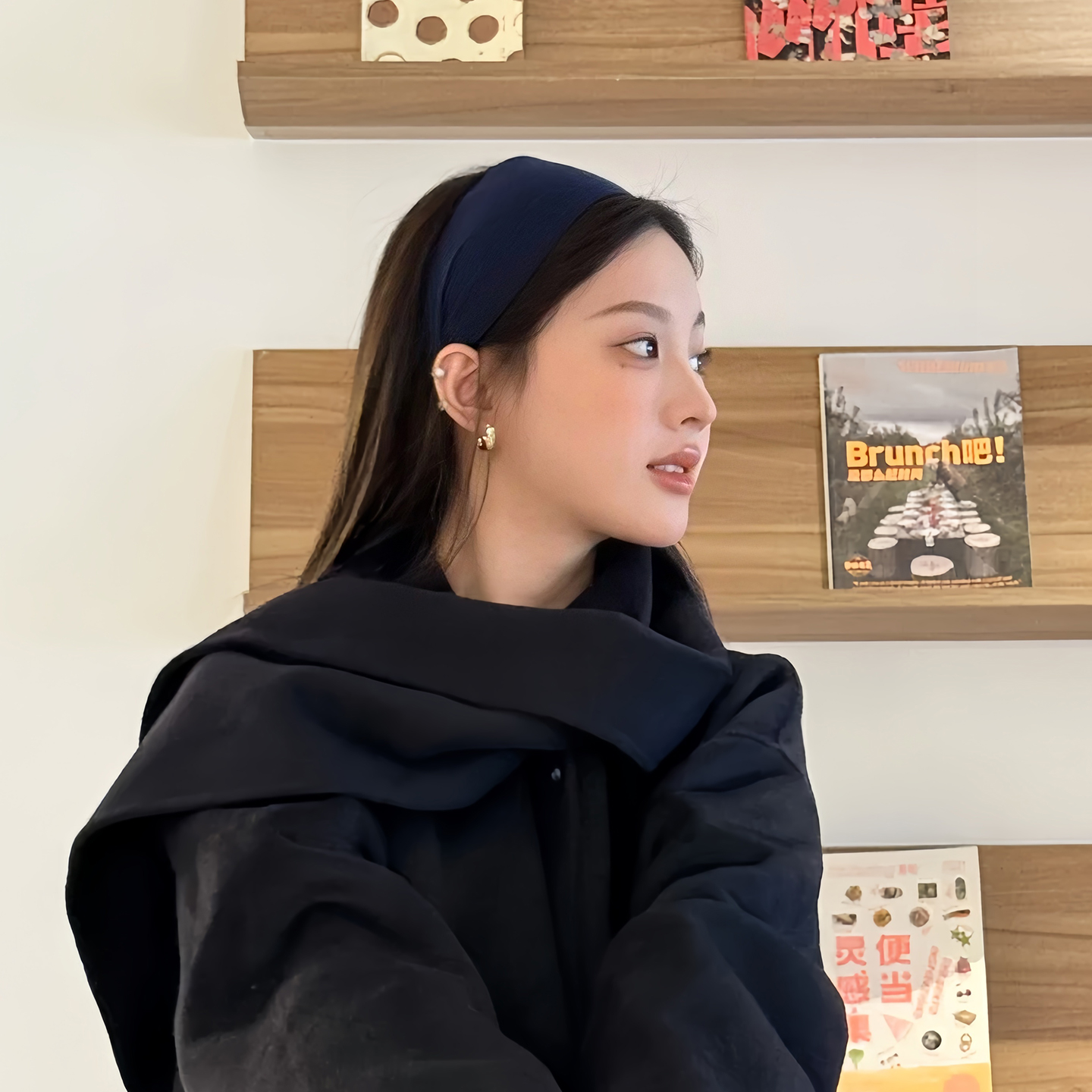 好显白藏蓝色宽边发箍女高级感复古显脸小发卡高颅顶气质头箍发饰