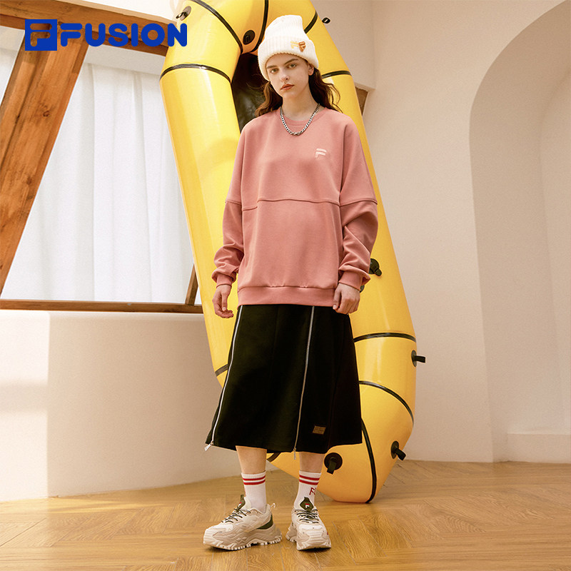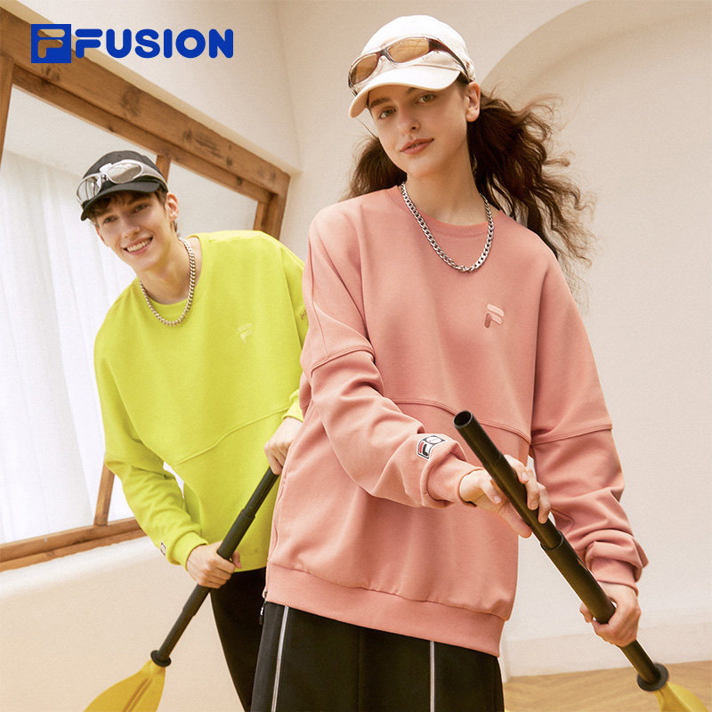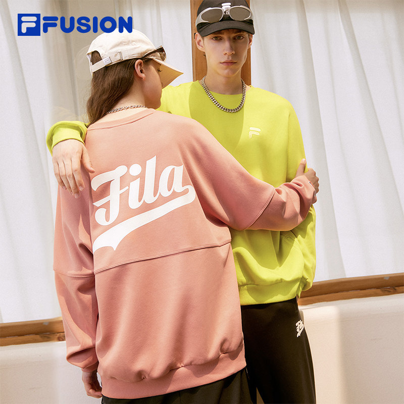 FILA FUSION斐乐潮牌情侣运动卫衣女春秋款圆领宽松上衣男套头衫