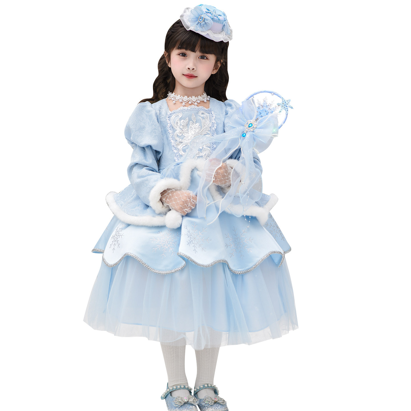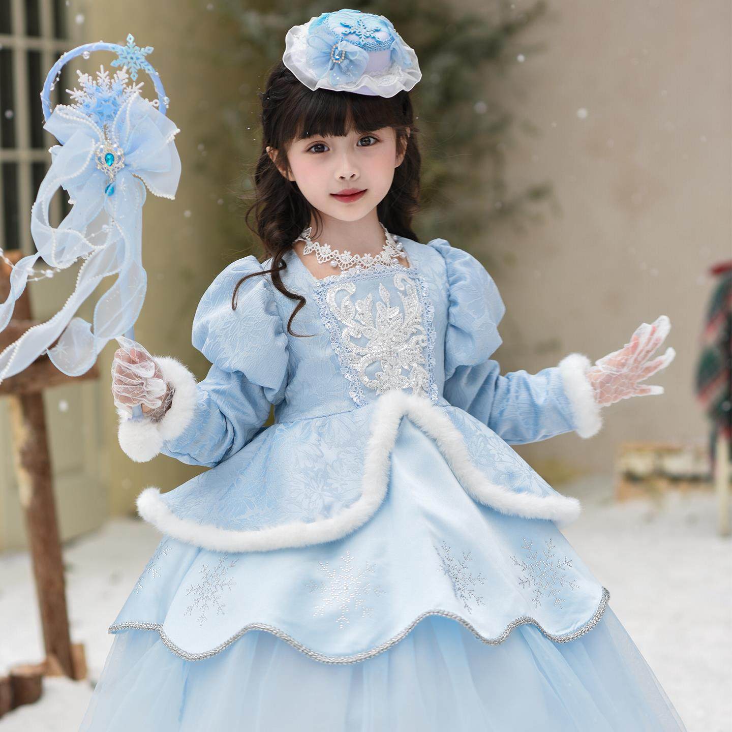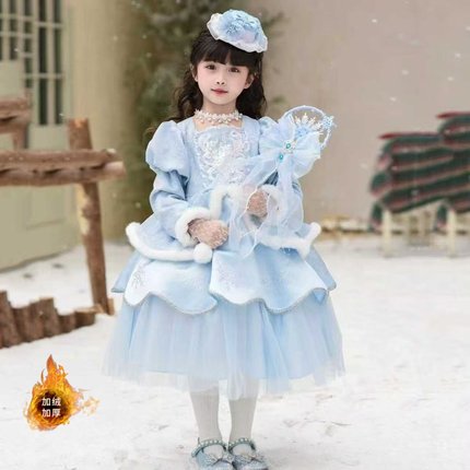女童洛丽塔公主裙秋冬新款儿童爱莎加绒连衣裙迪斯尼生日礼服裙