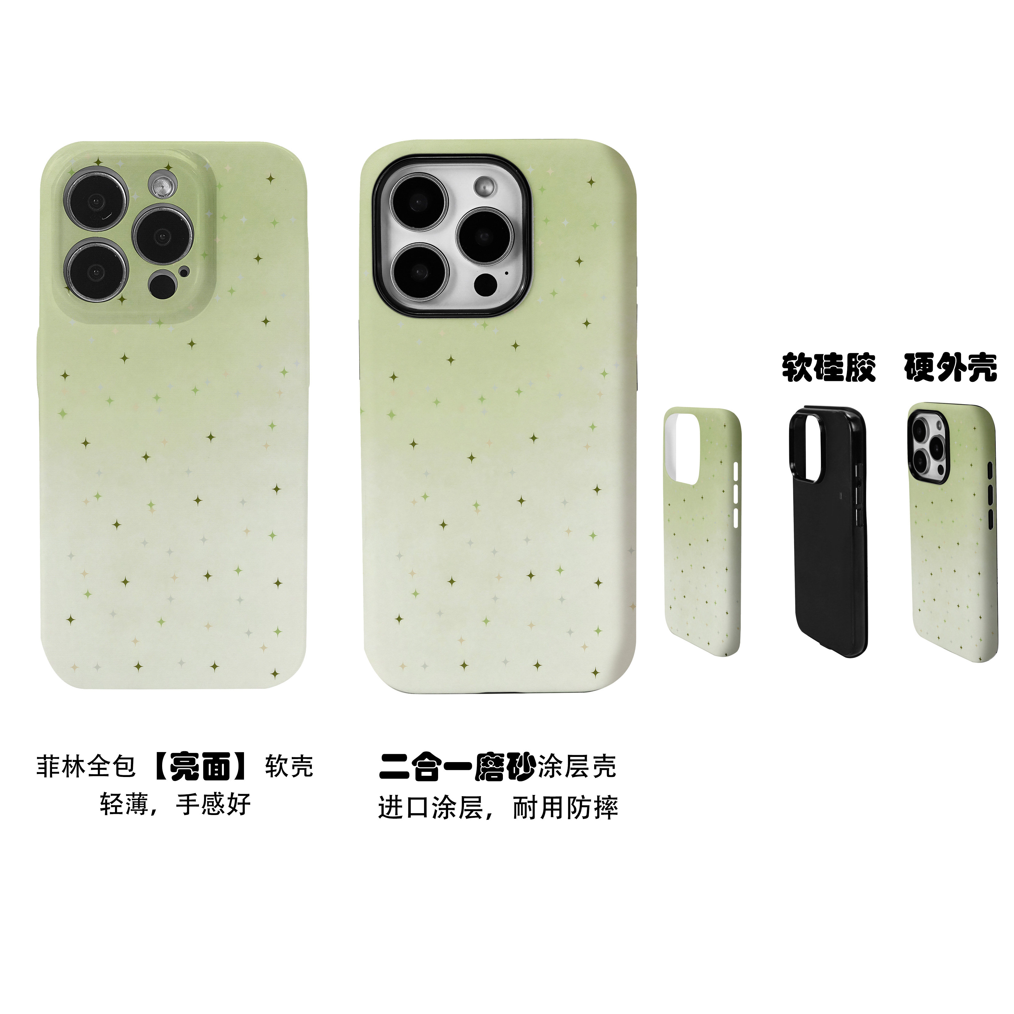 渐变绿色星光复古清新菲林二合一手机壳适用苹果17nova14华为p70mate60小米15opporen14ovivo荣耀300iPhone16