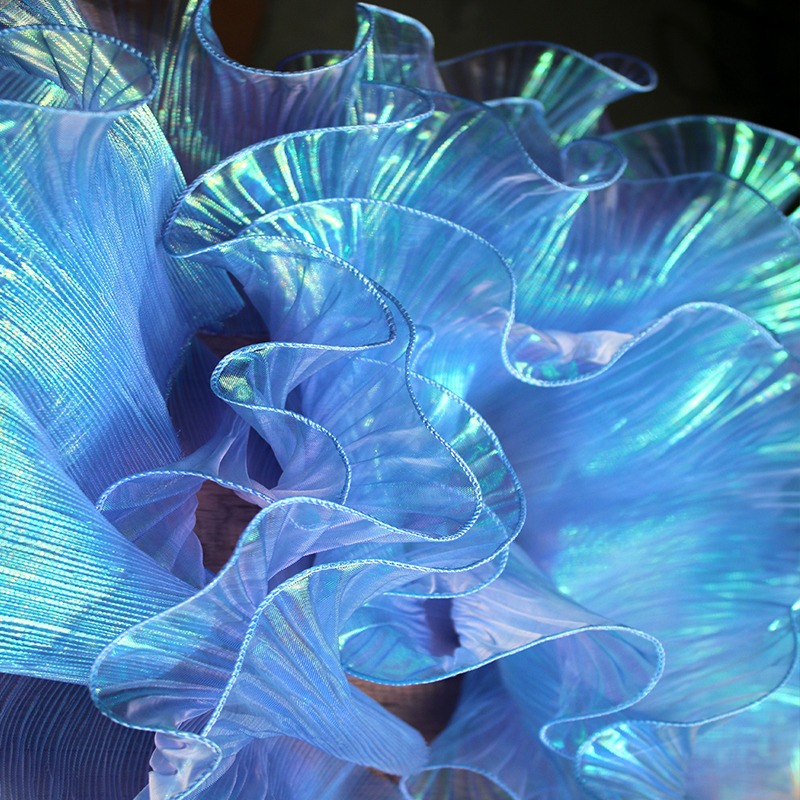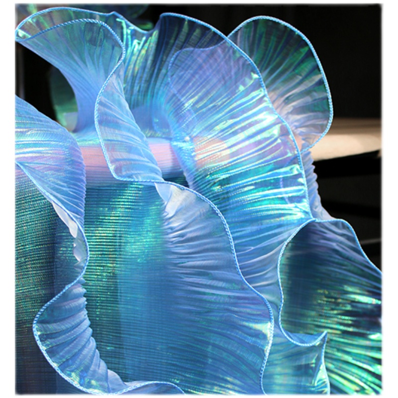 蓝海色幻彩渐变褶皱荷叶花边布料圣诞装饰裙摆辅料礼服装网纱面料