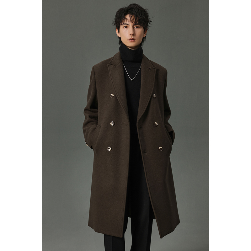 【储格】850g重磅加厚羊毛呢子大衣男长款过膝垫肩冬季风衣外套