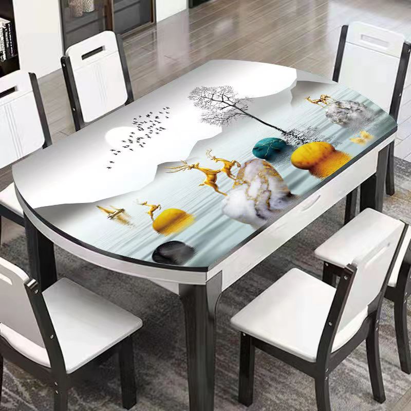 椭圆形餐桌垫可折叠伸缩桌桌布防水防油防烫现代简约pvc软玻璃