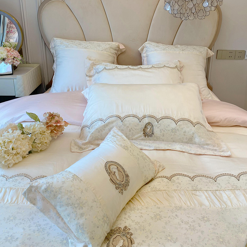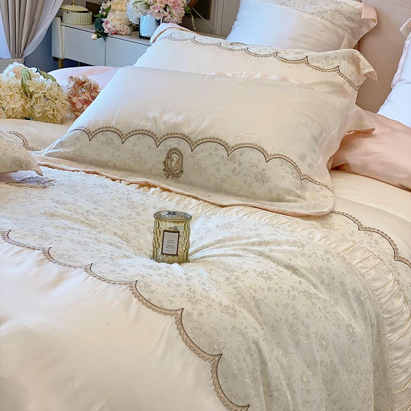 简约轻奢风60支凉感双面天丝四件套刺绣裸睡被套丝滑1.8Zm床上用