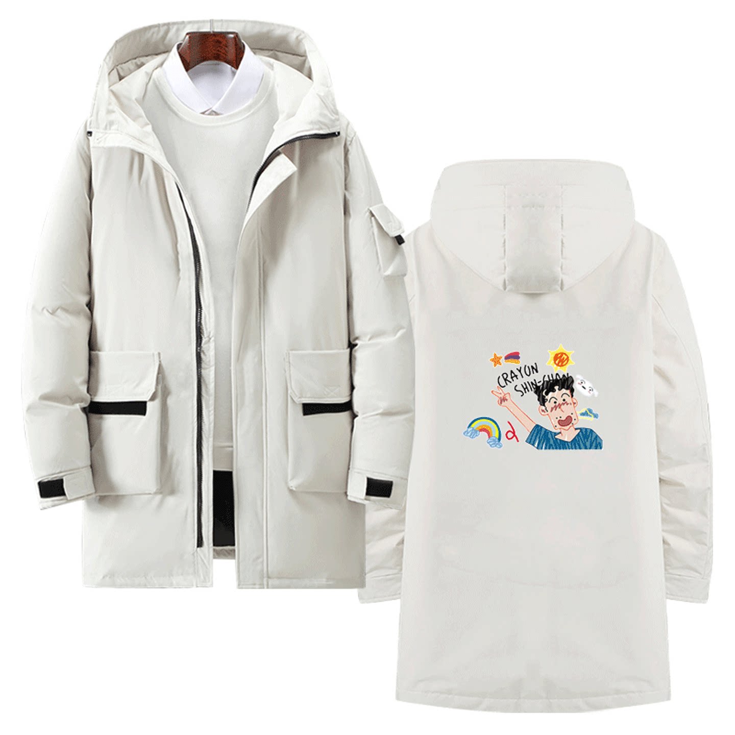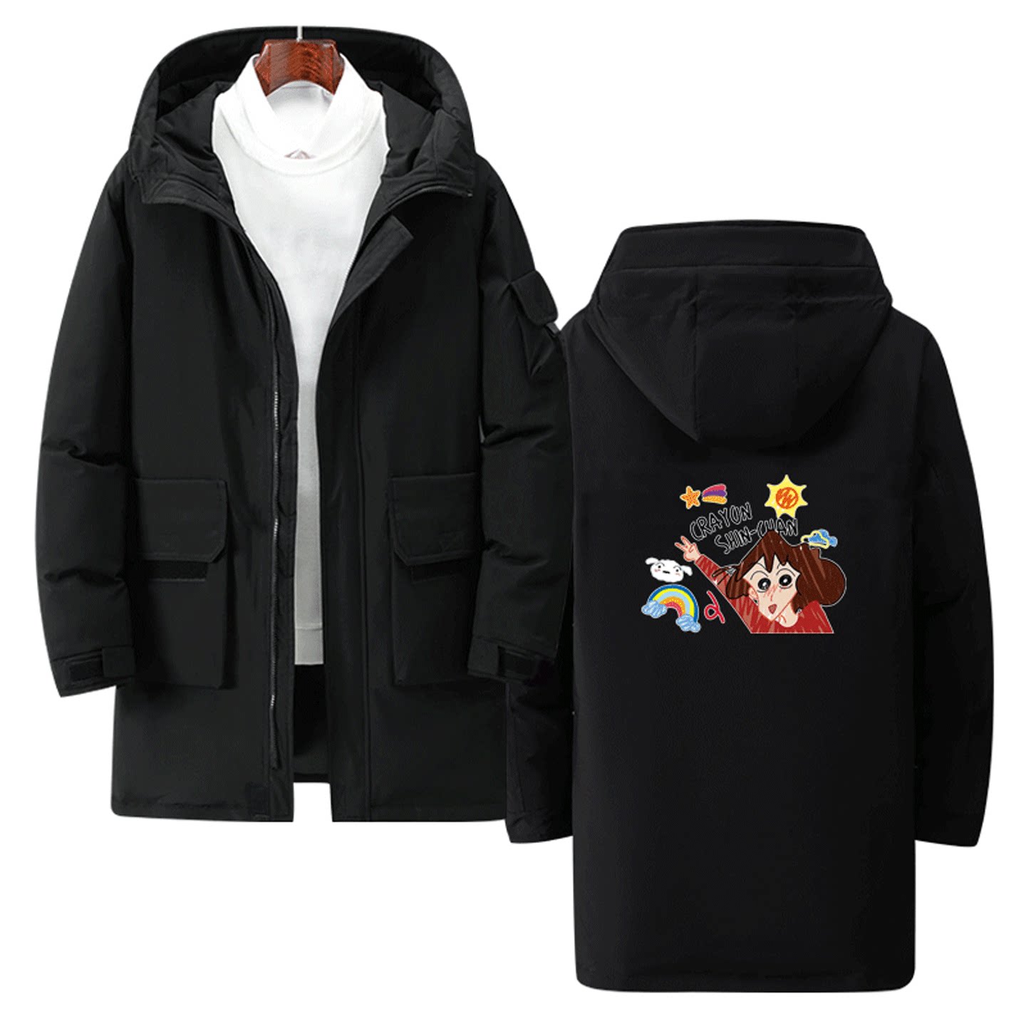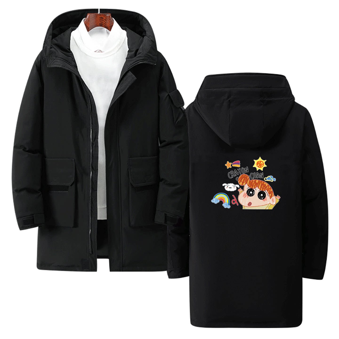 蜡笔小新美伢新之助秋冬情侣可定制中长款羽绒服卡通可爱印花男女