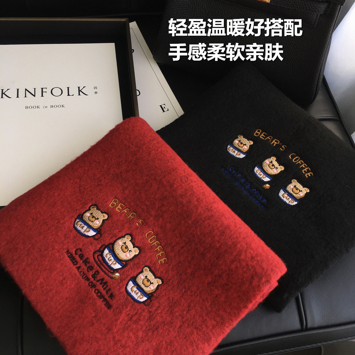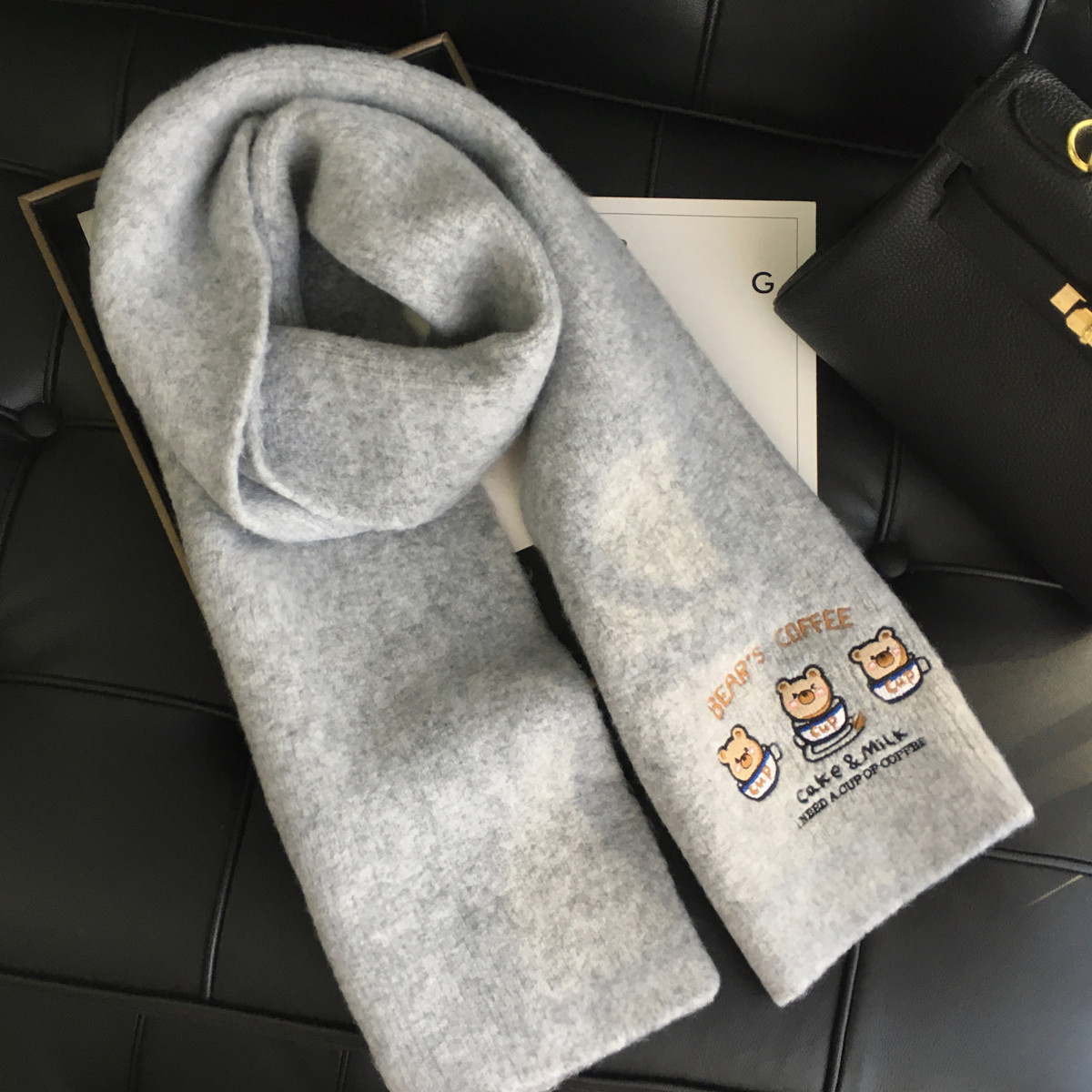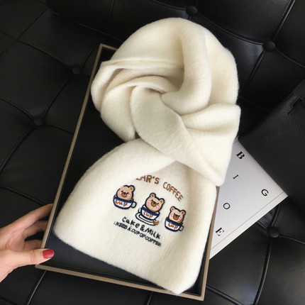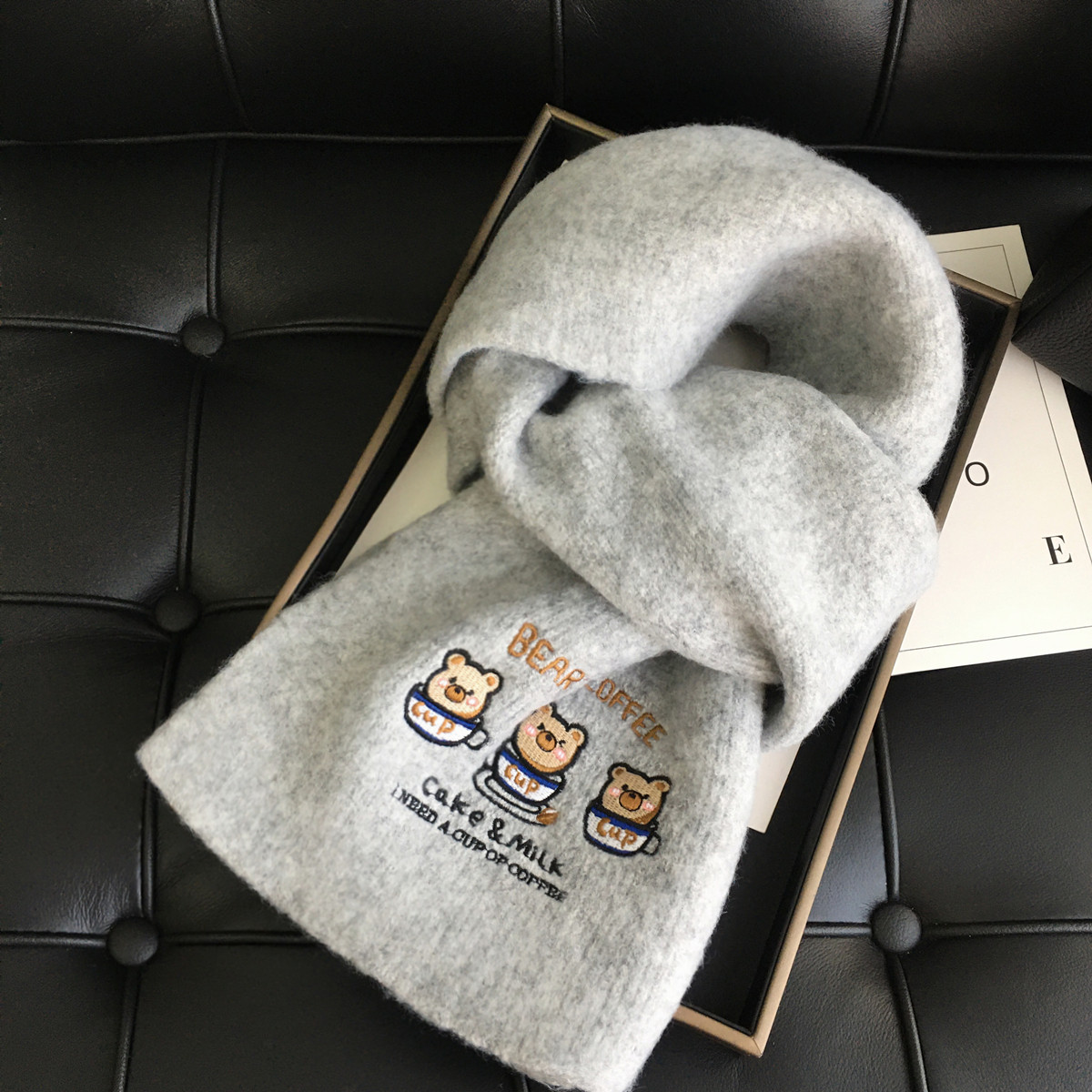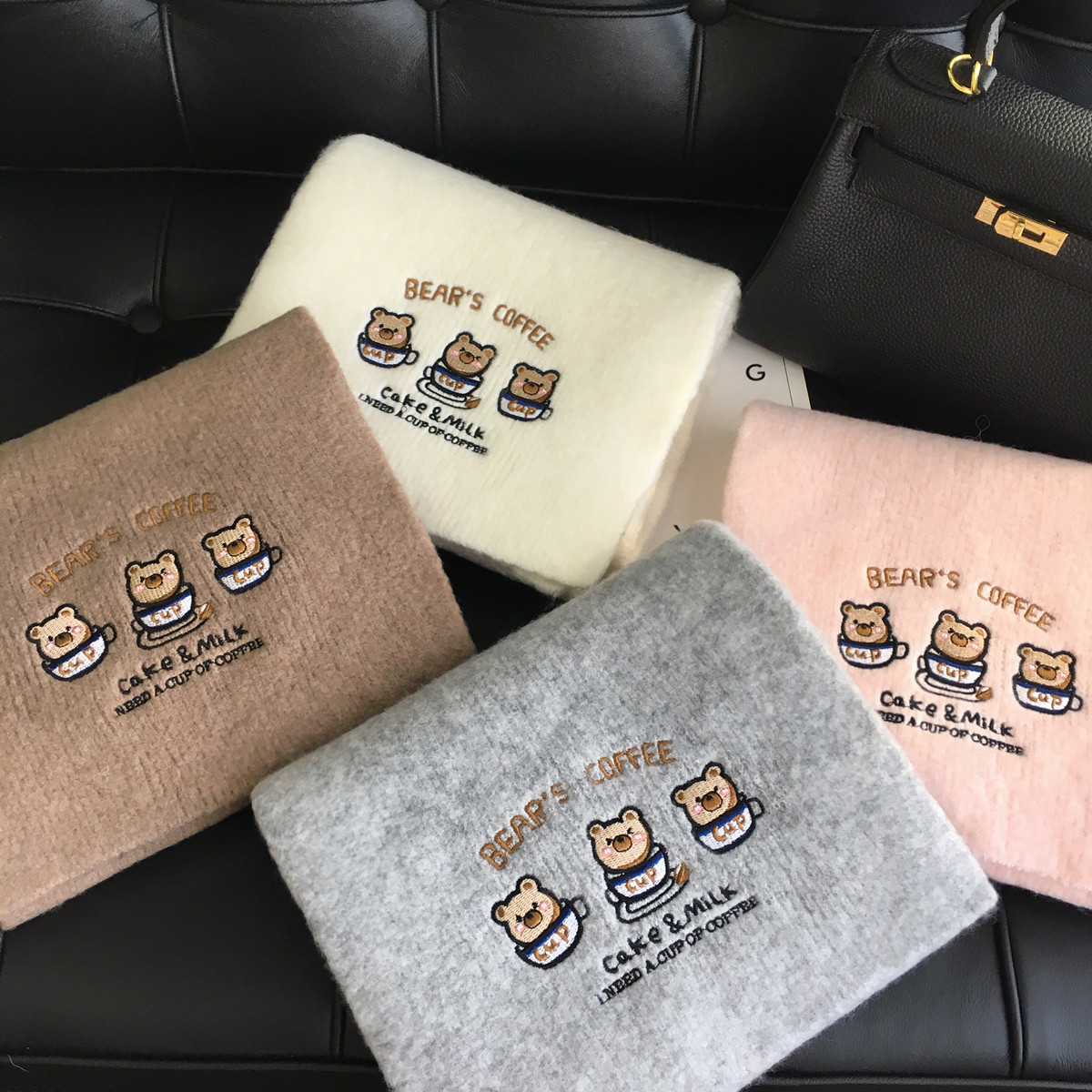 小溜家冬季新款韩国刺绣卡通小熊毛线针织围巾仿羊绒加厚保暖围脖