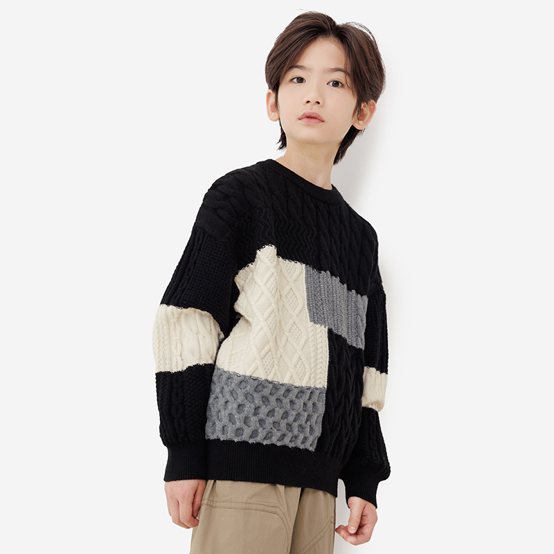 纯一良品童装男童毛衣2024秋冬新款中大童时尚复古立体提花针织衫