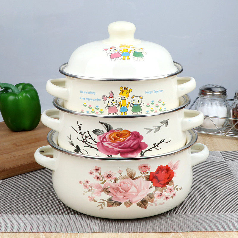 迷你搪瓷小锅加厚珐琅搪瓷锅汤锅炖锅双耳煮面锅热奶锅宝宝辅食锅