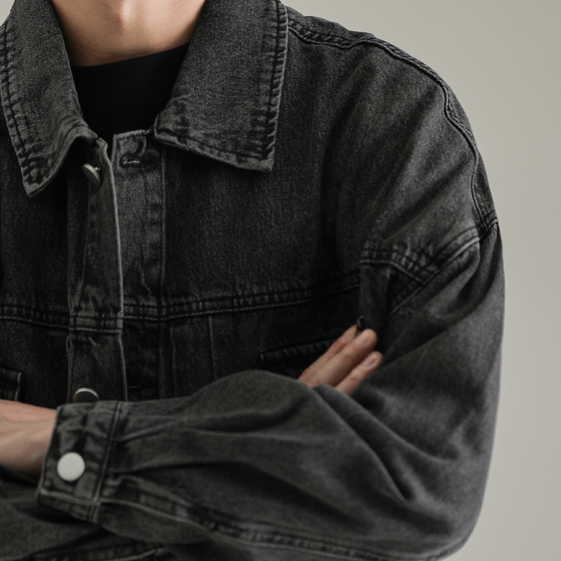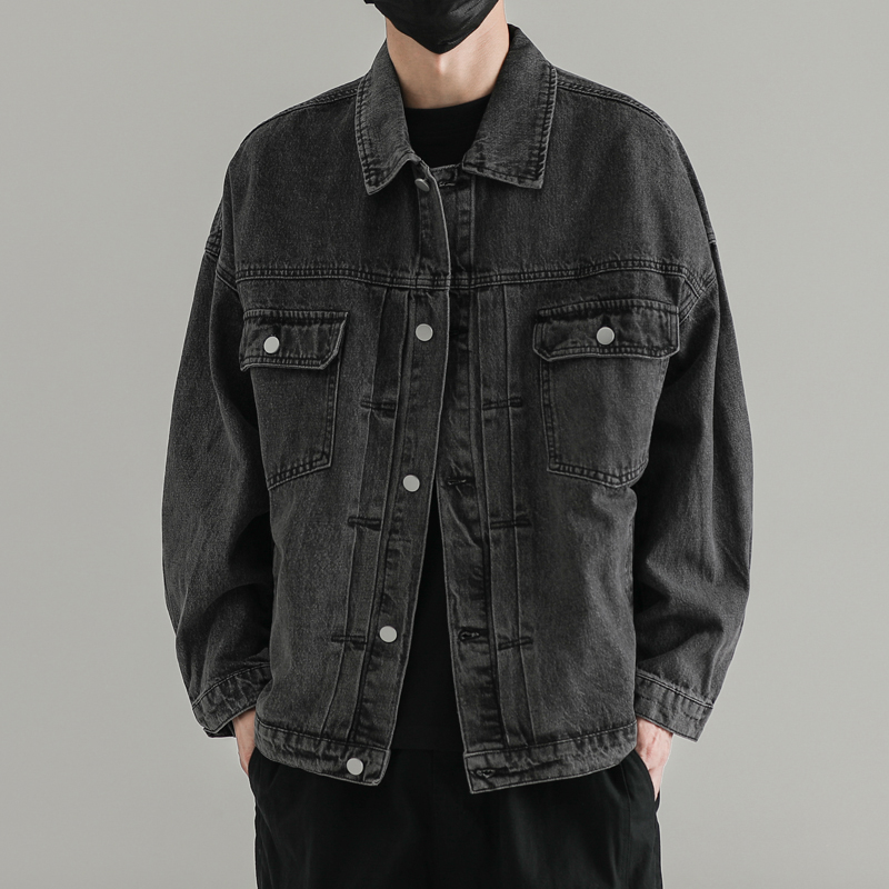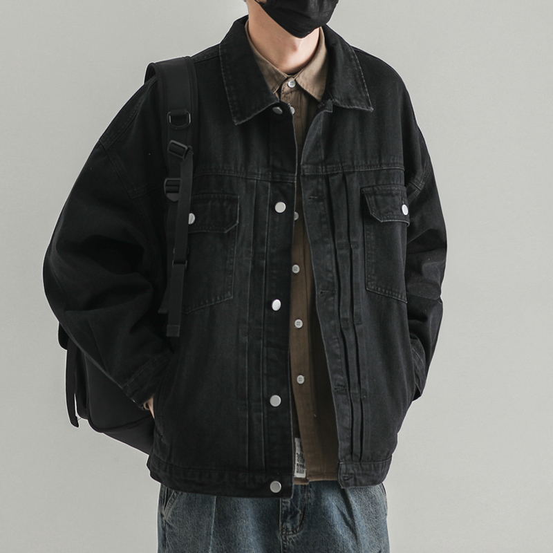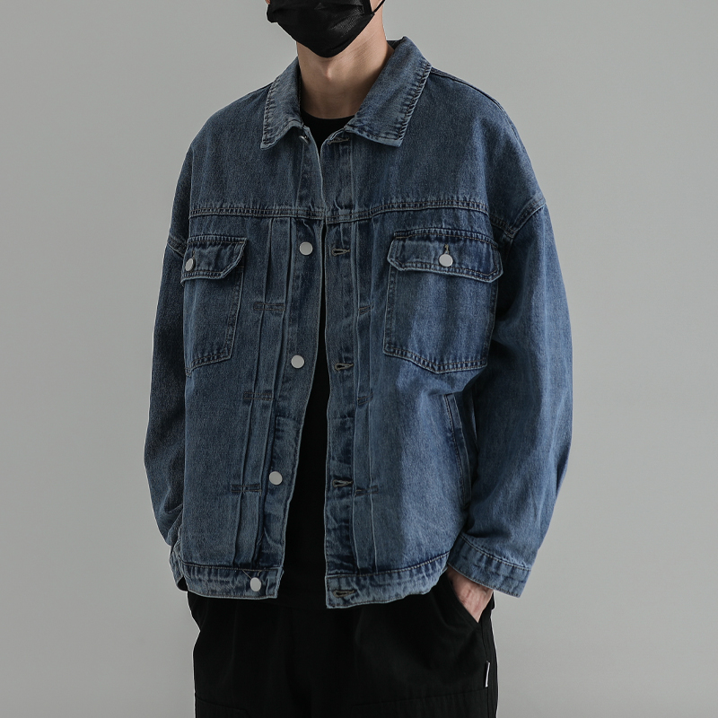 美式复古牛仔外套男春秋季新款潮牌翻领上衣宽松休闲水洗做旧夹克