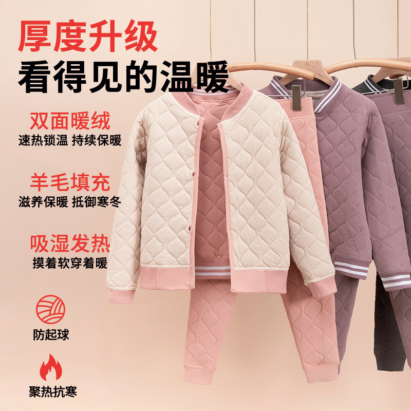 女童保暖内衣套装小学生秋冬季加绒加厚内搭校服神器儿童棉裤子男