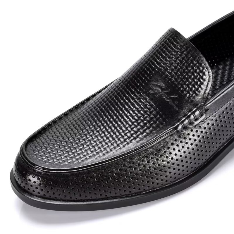 沙驰男鞋新款真皮一脚蹬商务正装皮鞋透气防滑软底镂空乐福鞋男