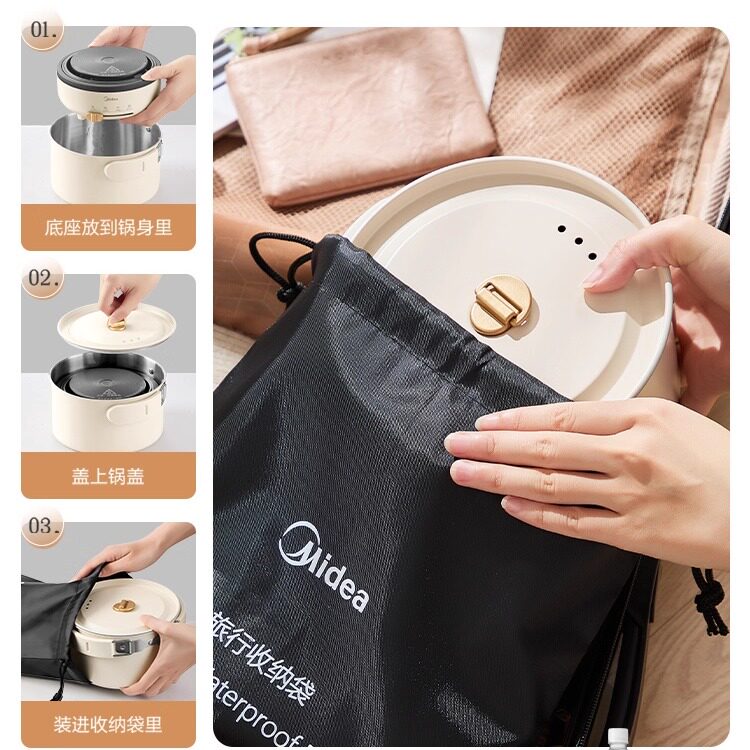 美的0涂层电煮锅折叠316L不锈钢多功能宿舍小锅分体式便携电火锅