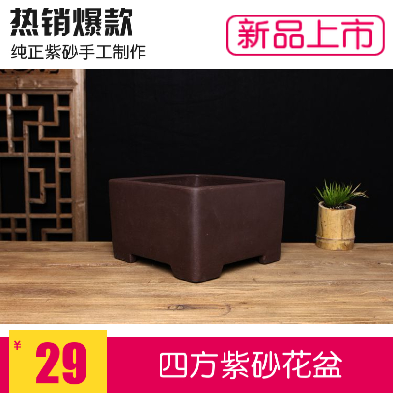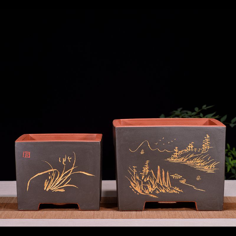 宜兴紫砂花盆 四方盆 花卉绿植 兰花盆栽 菖蒲君子兰陶瓷客厅阳台