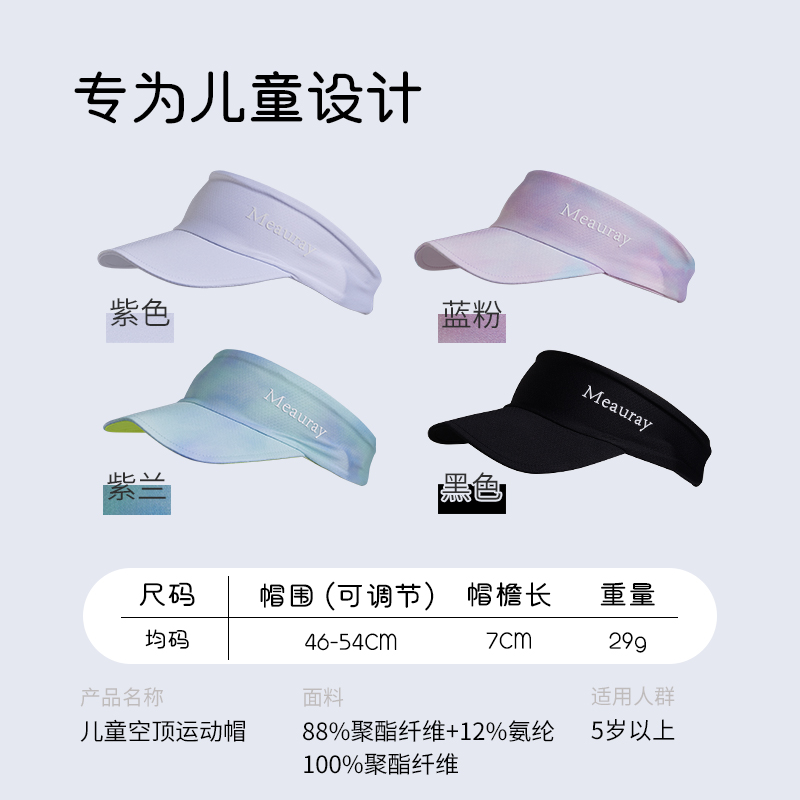 meauray儿童运动遮阳空顶帽户外透气帽吸汗速干宝宝棒球跑步帽