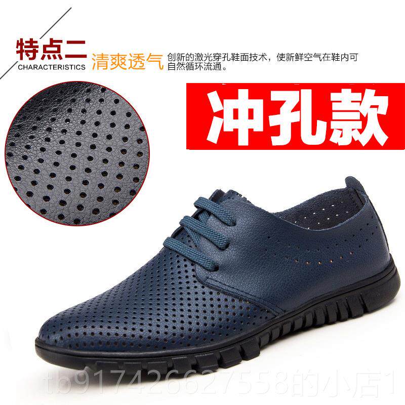 新款超软男鞋季透气镂空牛皮皮鞋务男码小码46大47商休闲夏鞋子男