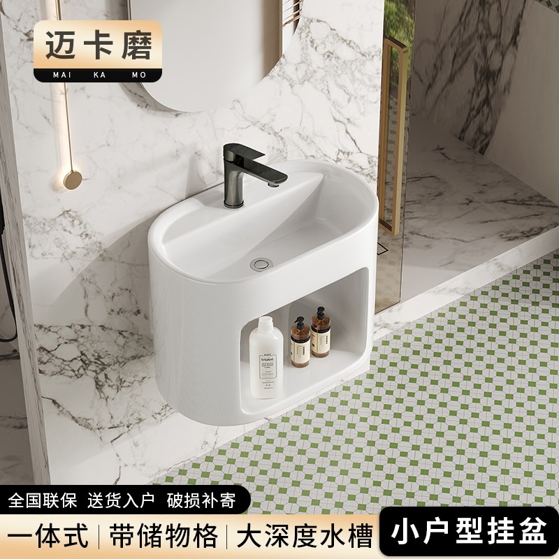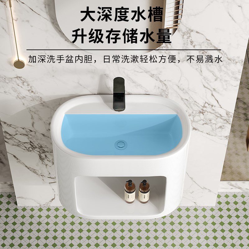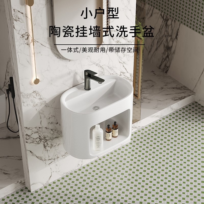 挂墙式小户型一体洗脸盆洗手盆陶瓷卫生间阳台带储物收纳格洗手池