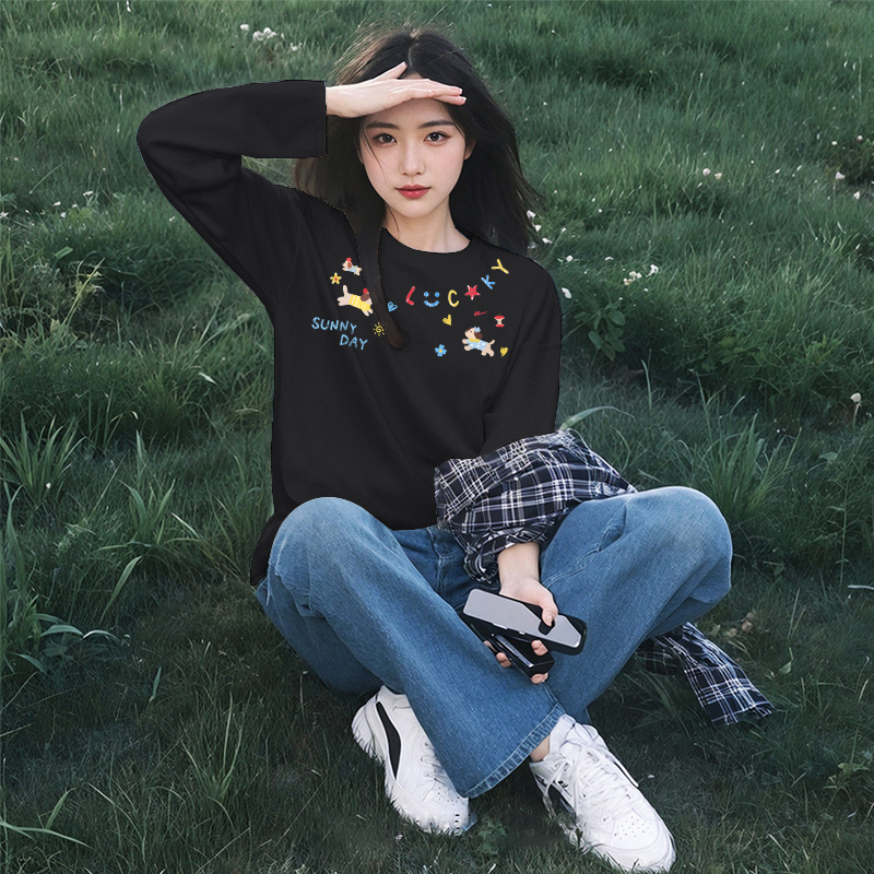 男童女童长袖纯色运动装中小学生条纹黑白休闲套装儿童秋季纯棉服