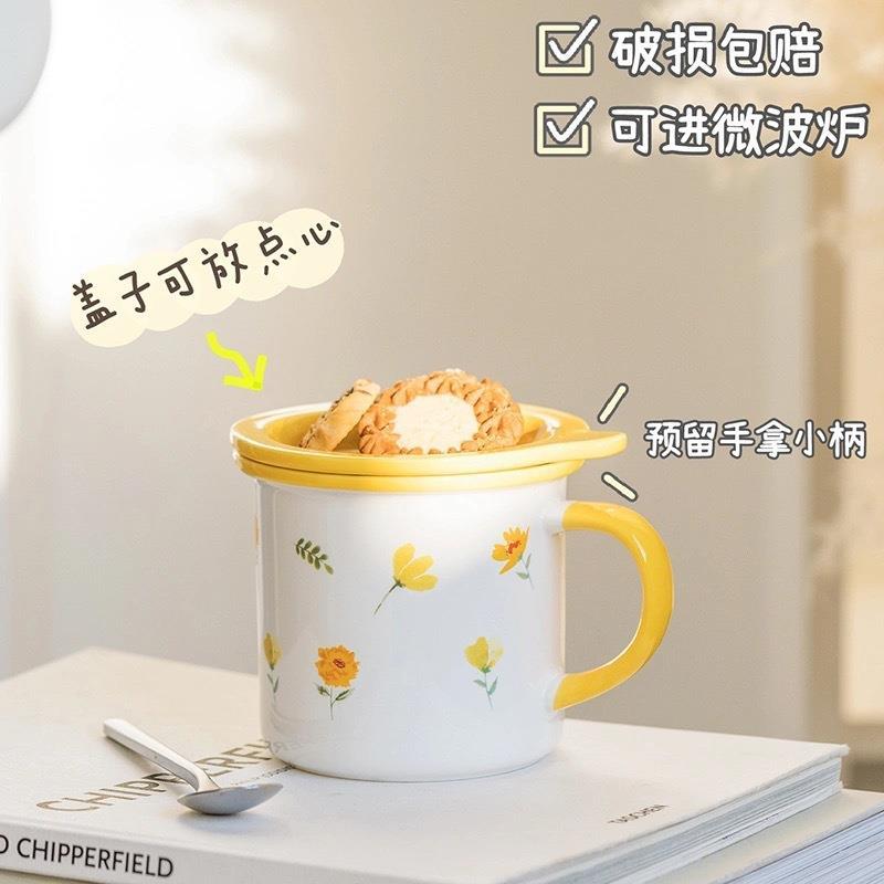 马克杯带盖咖啡杯陶瓷杯子女可爱北欧家用大容量水杯早餐杯燕麦杯