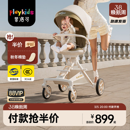 playkids普洛可A8MAX遛娃神器可坐躺可折叠高景观轻便推车婴儿车