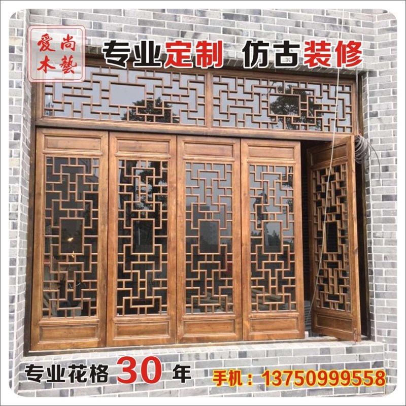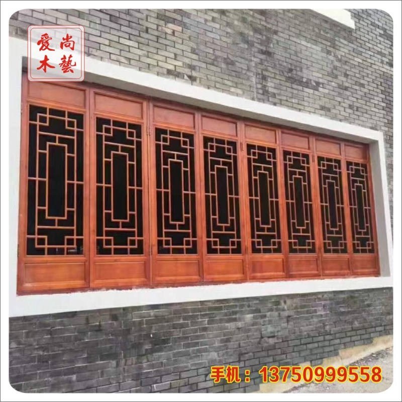 东阳木雕仿古门窗实木镂空花w格吊顶新中式门窗木窗隔断屏风背景
