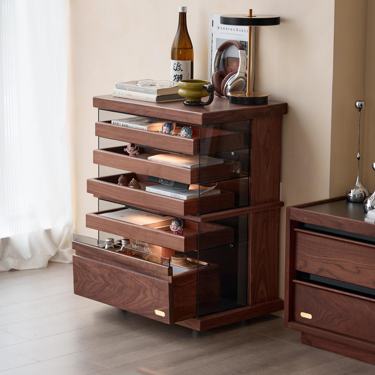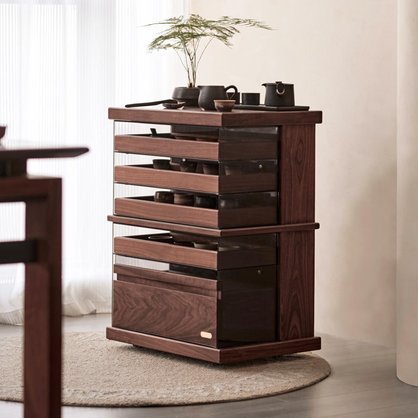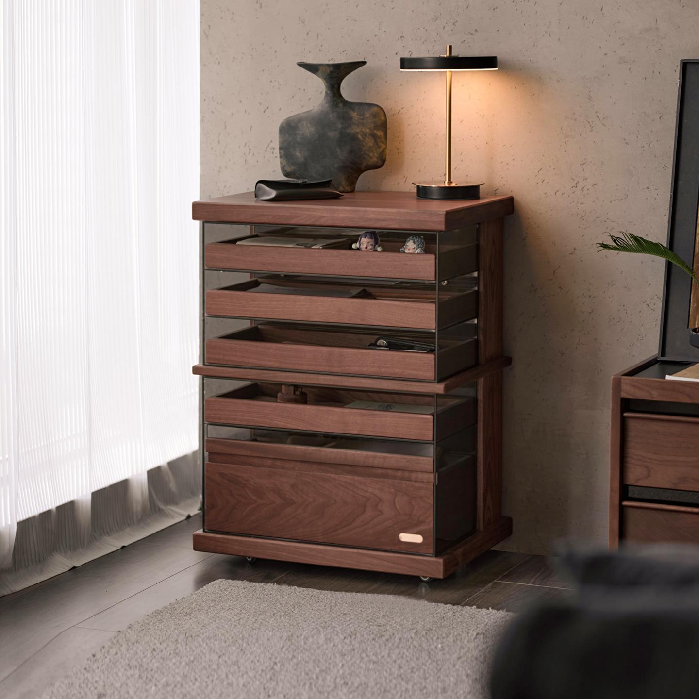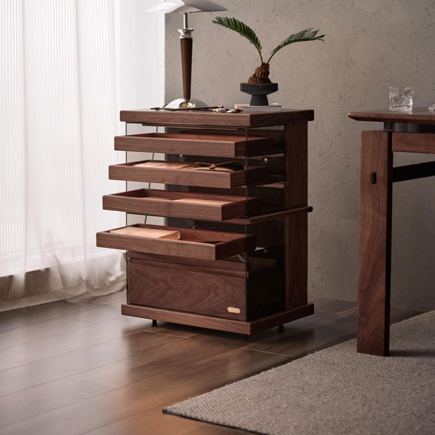 色格实木文件柜北美黑胡桃木可移动抽屉柜复古木质书房储物展示柜