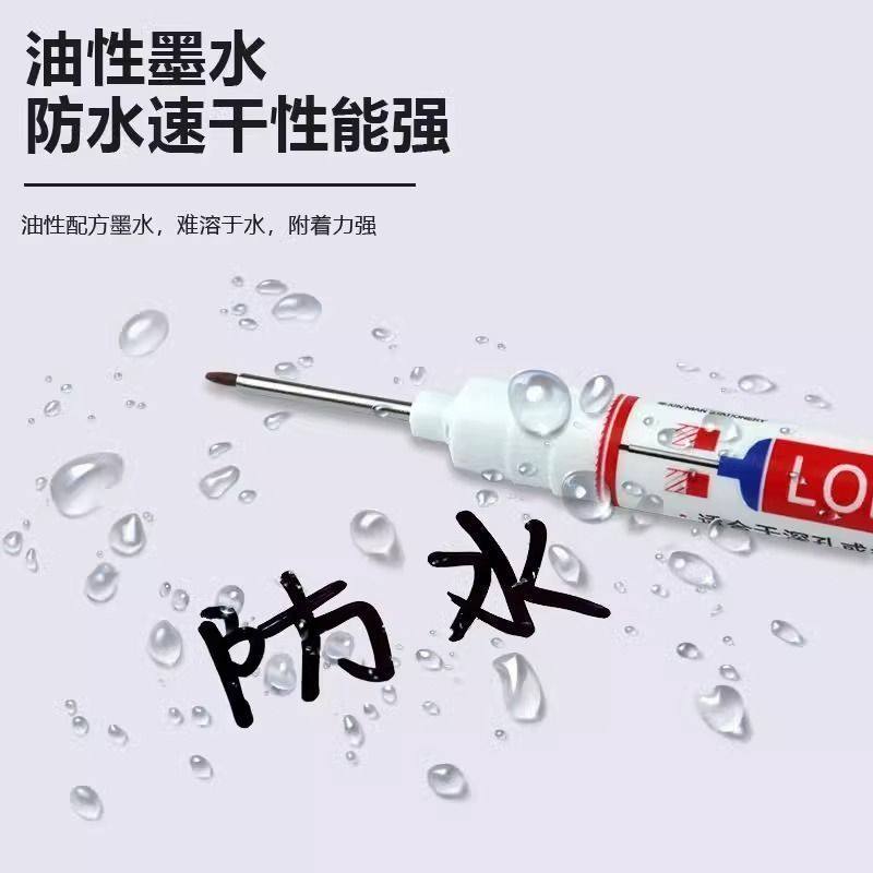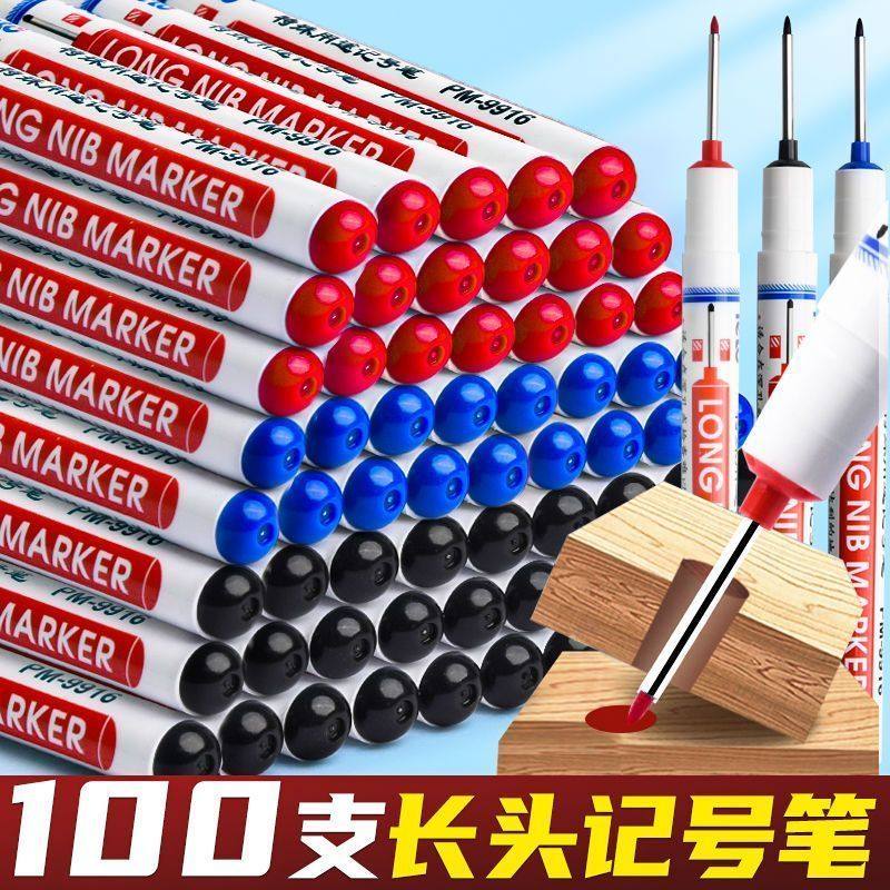 100个装】长头记号笔批发油性防水加打孔标记深孔笔白色瓦工地
