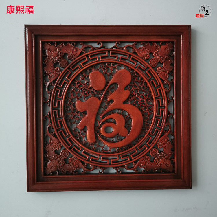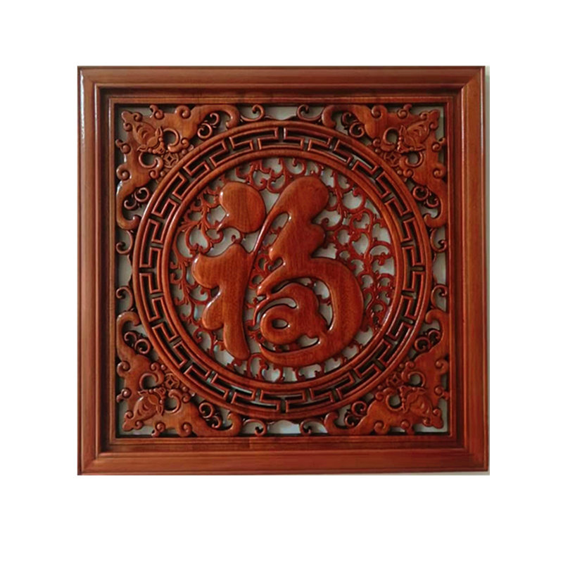 东阳木雕中式仿古挂件客厅实木正方形家居室内福字壁挂背景墙雕花