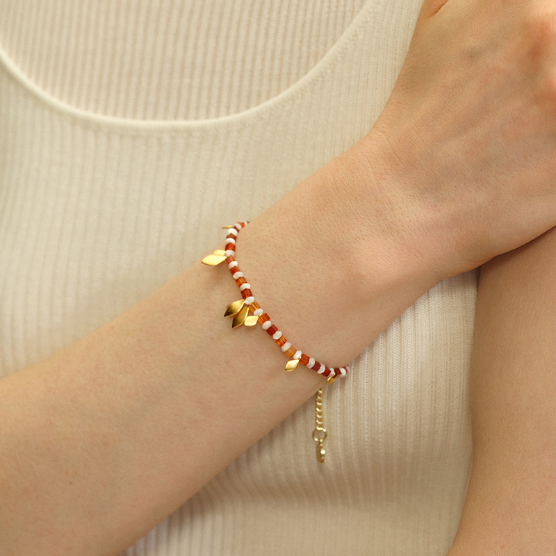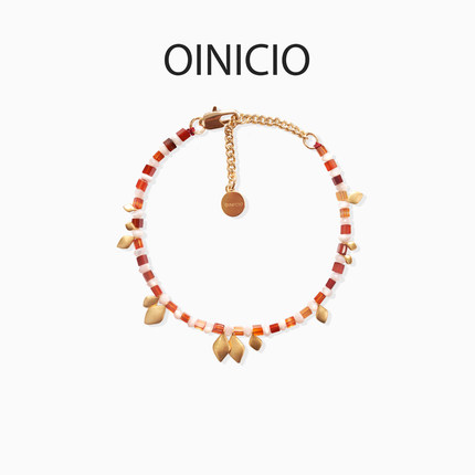 [新年礼物]OINICIO初印种子系列叶子宝石串珠手链本命年红绳手串