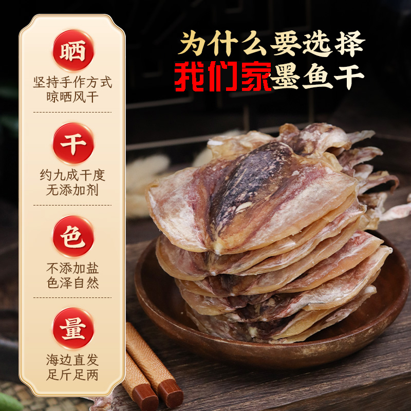 精选墨鱼干淡晒目鱼干乌贼干海鲜特产煲汤墨鱼干干货500g