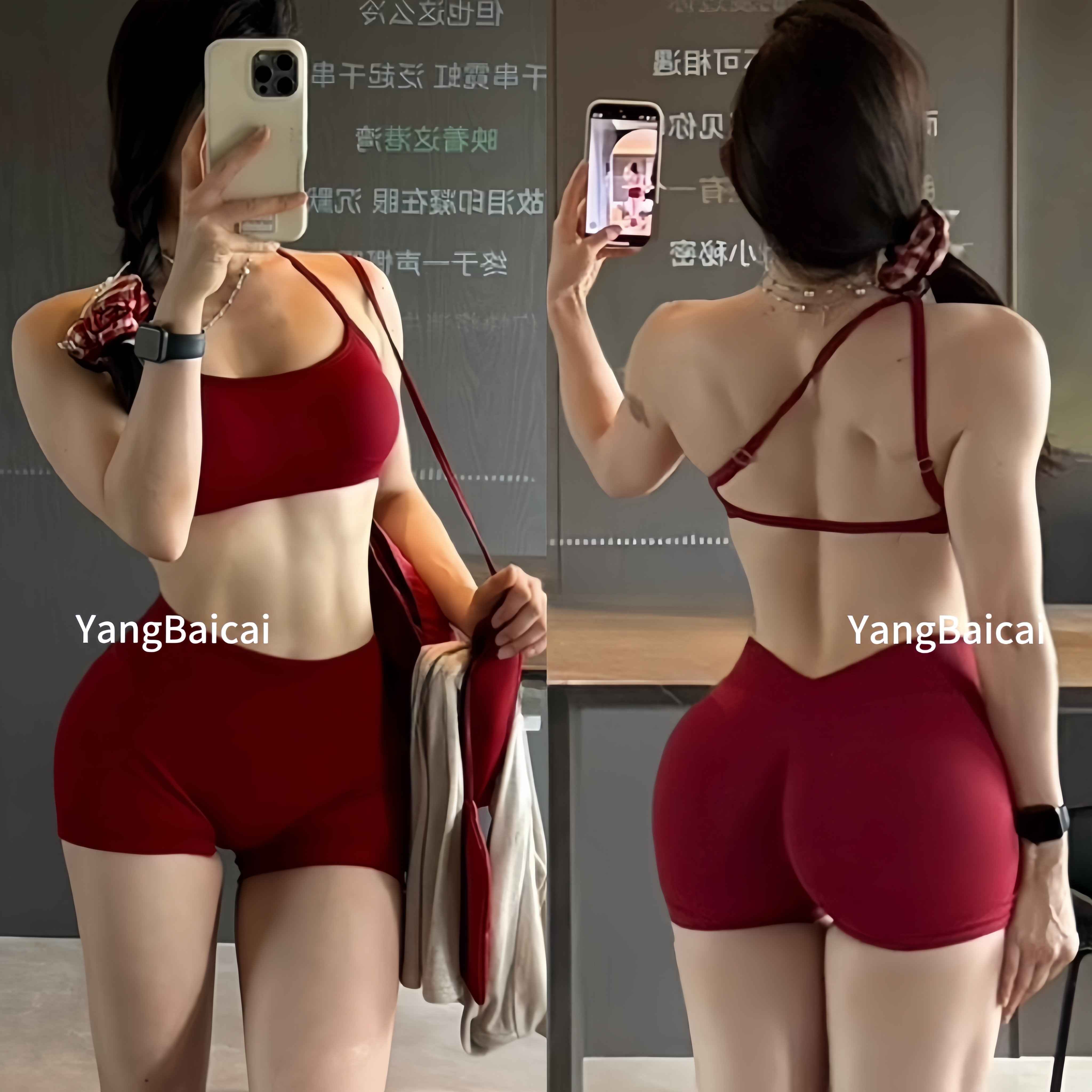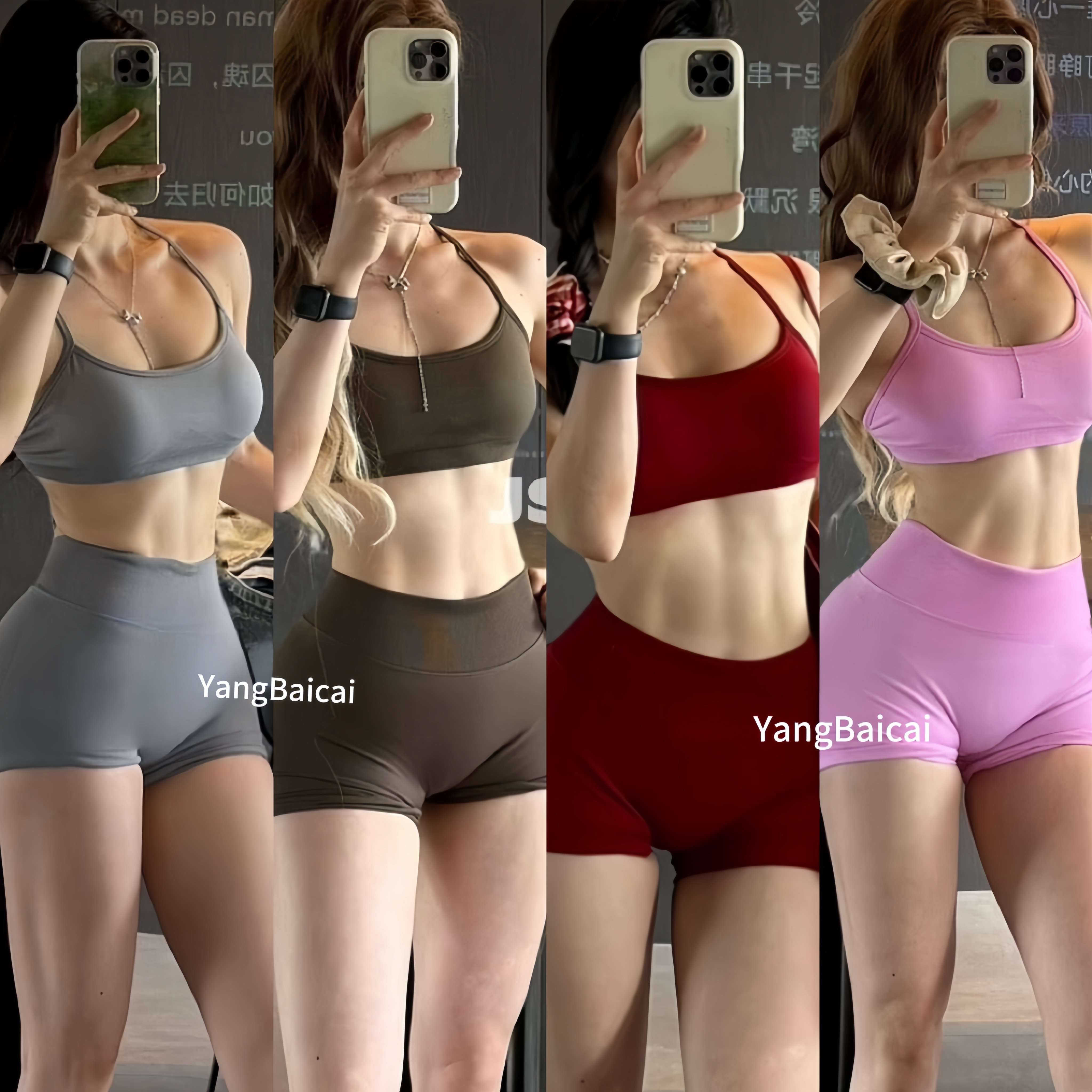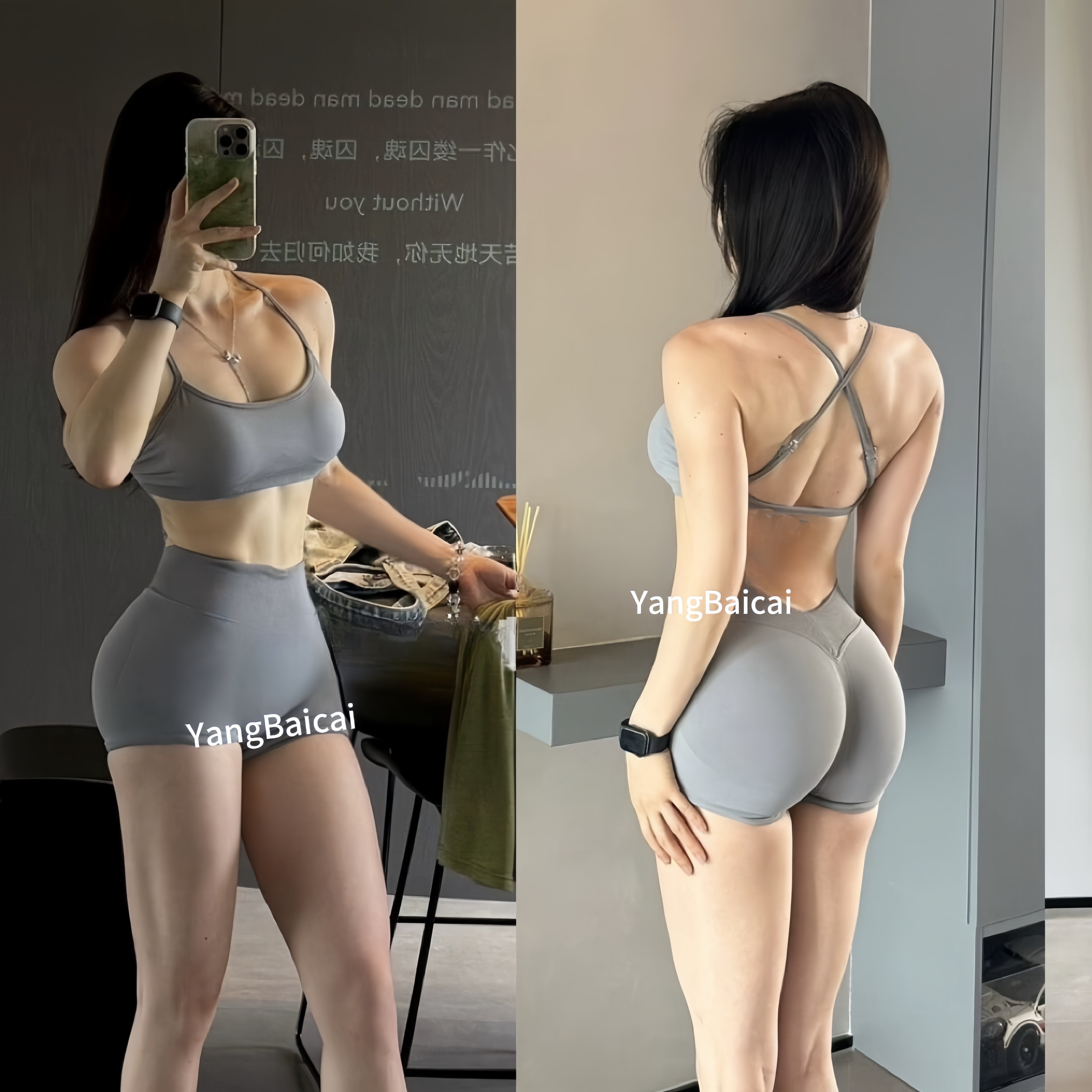 [提臀王]后V显臀瑜伽短裤女中高腰运动内衣健身防震背心跑步夏