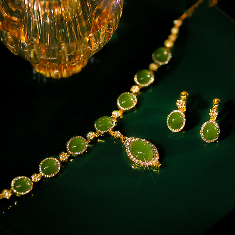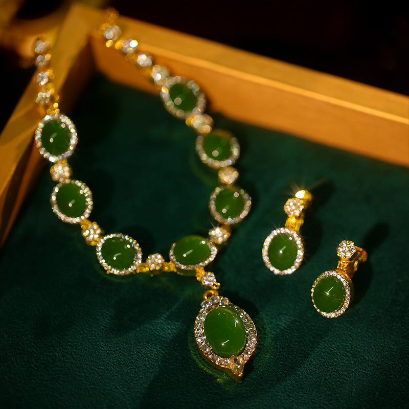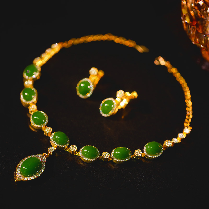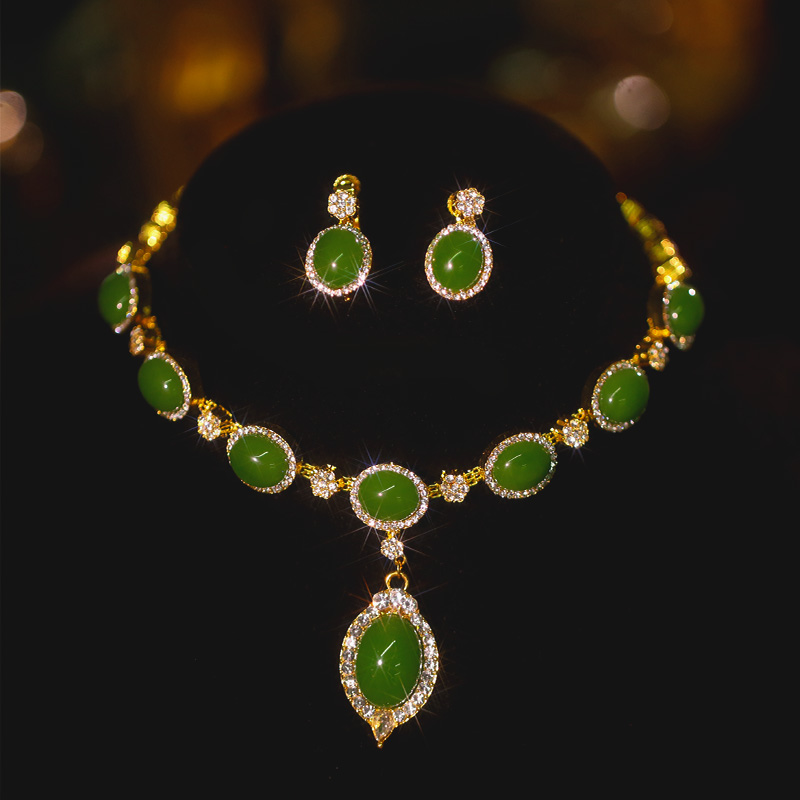 新款绿宝石项链耳环套装新娘配饰秀禾服水钻锁骨复古结婚配饰套装