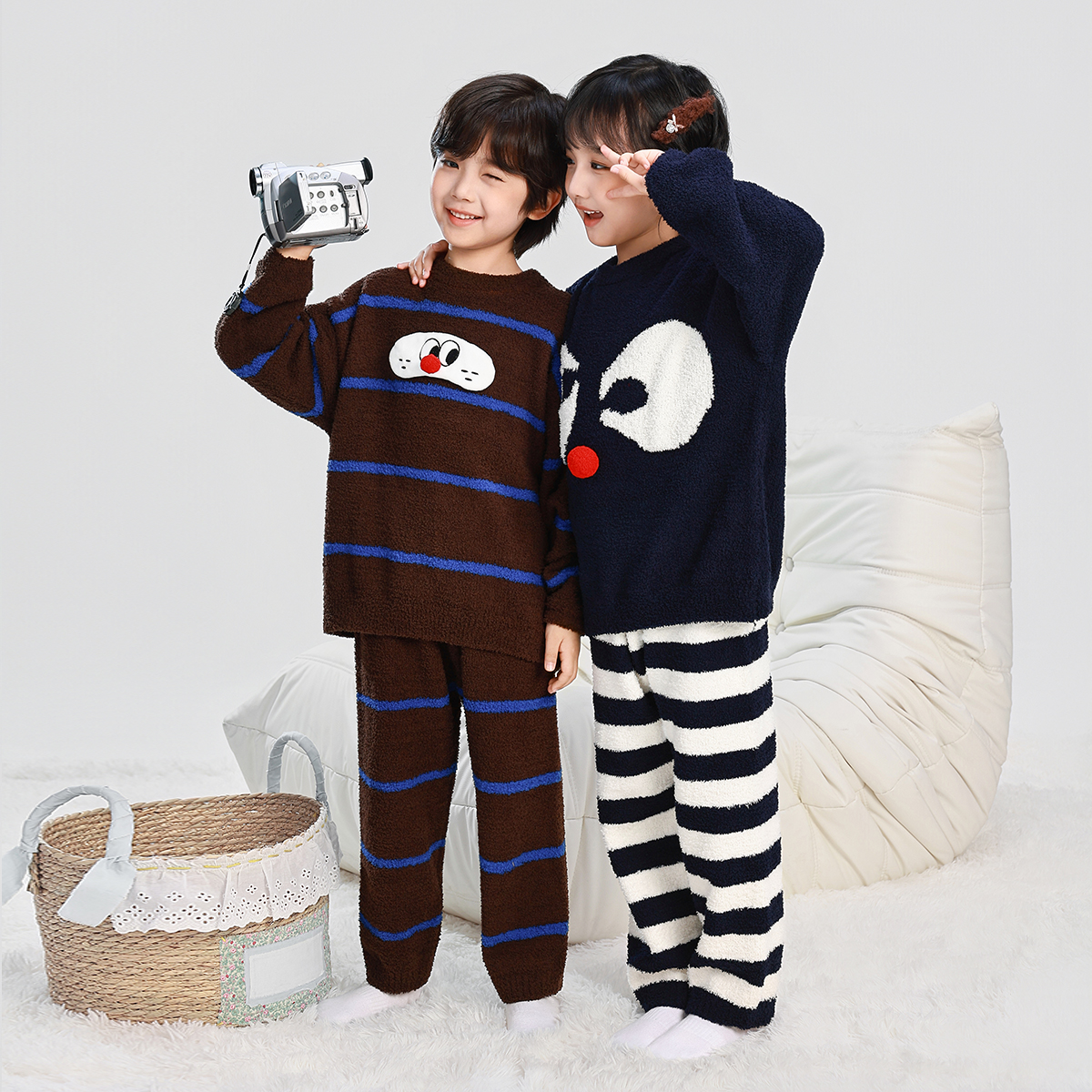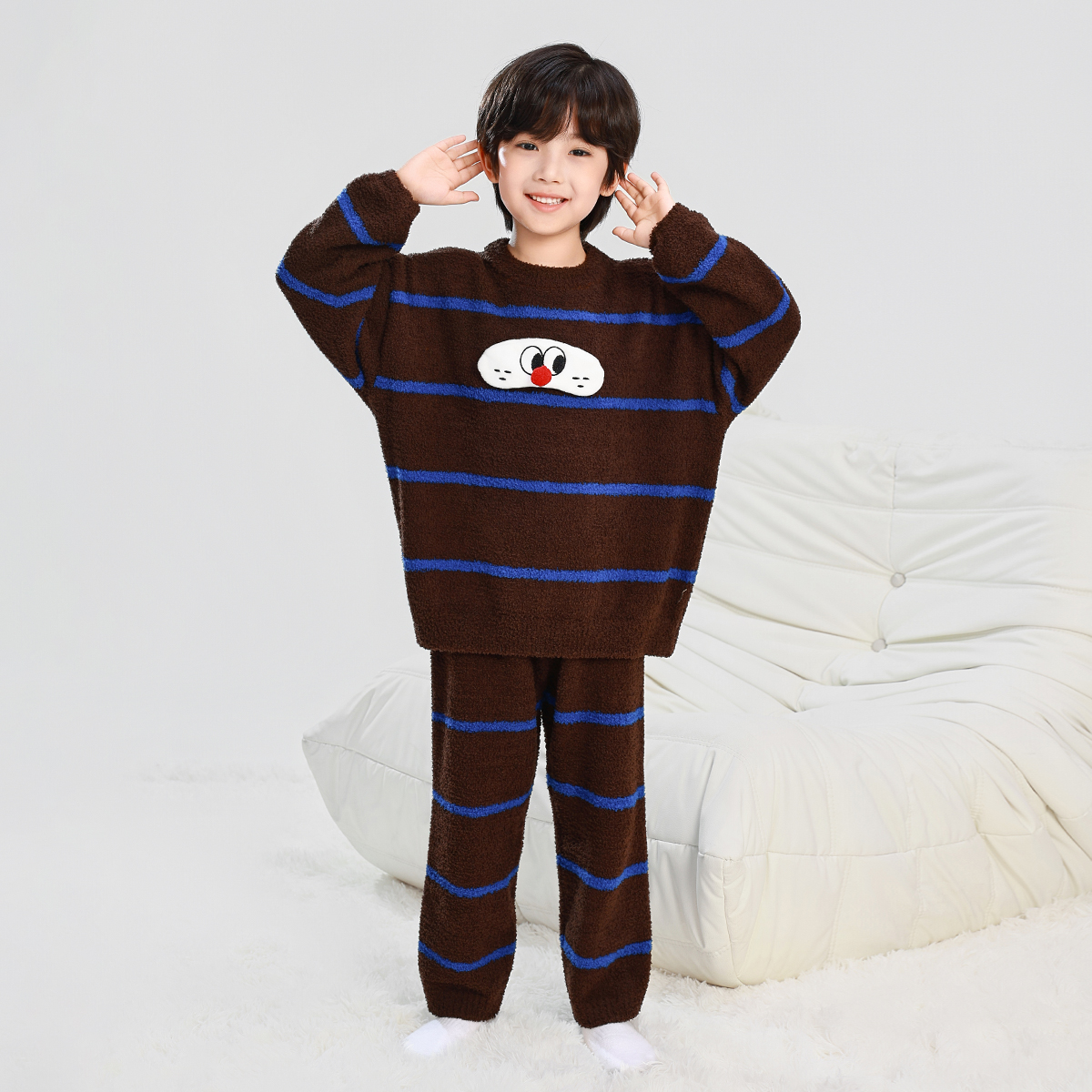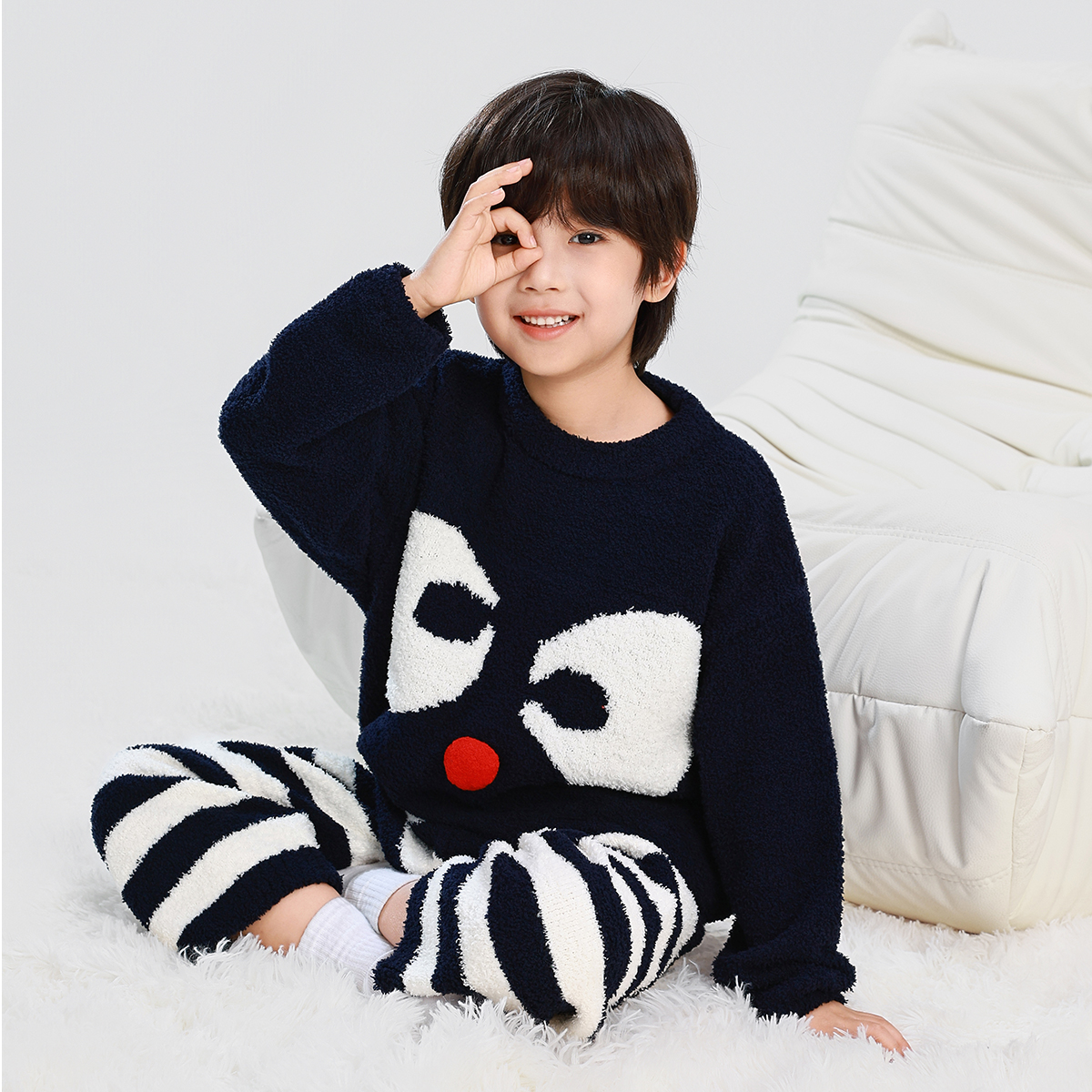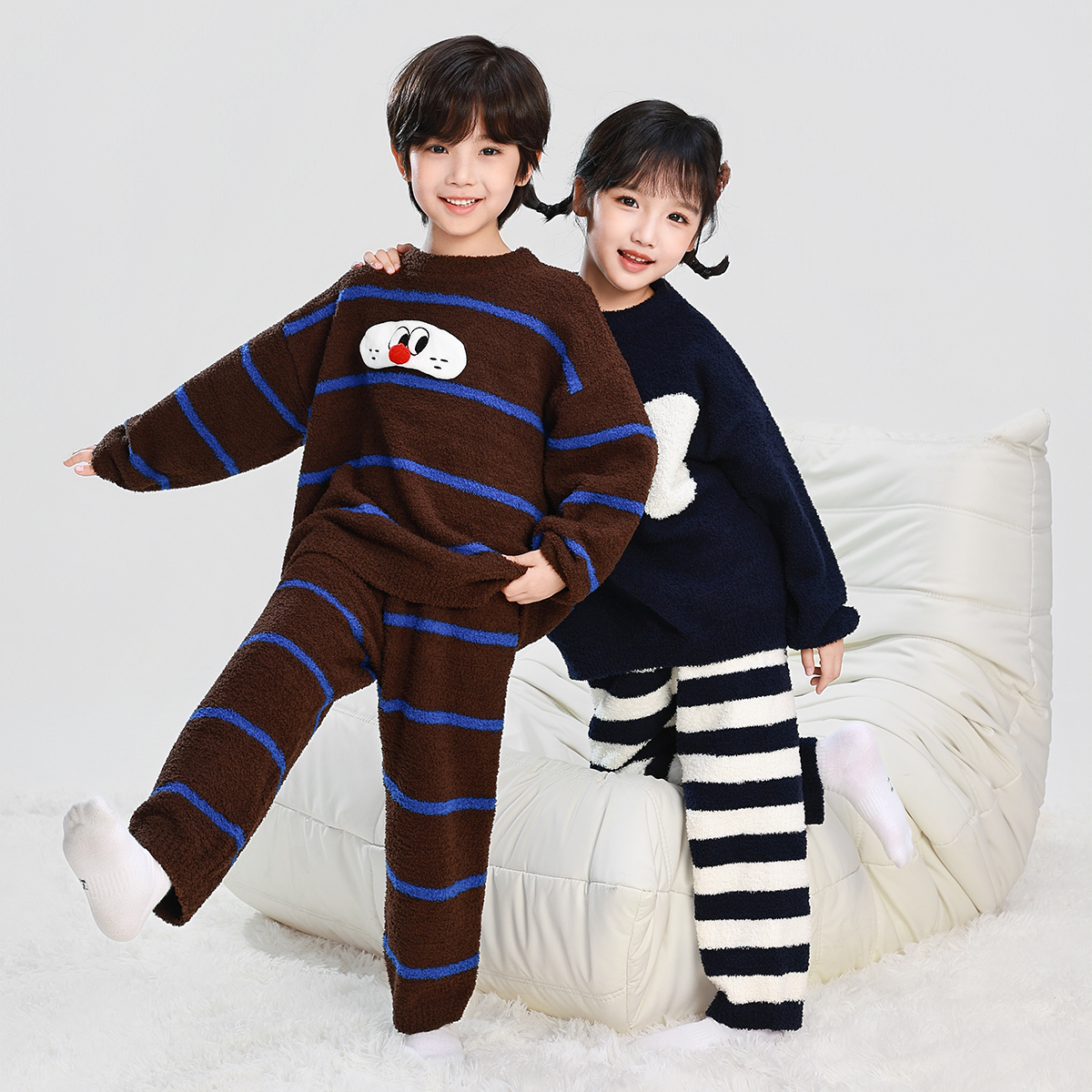 男童睡衣秋冬款2025新款儿童男孩半边绒家居服加厚冬季套装两件套