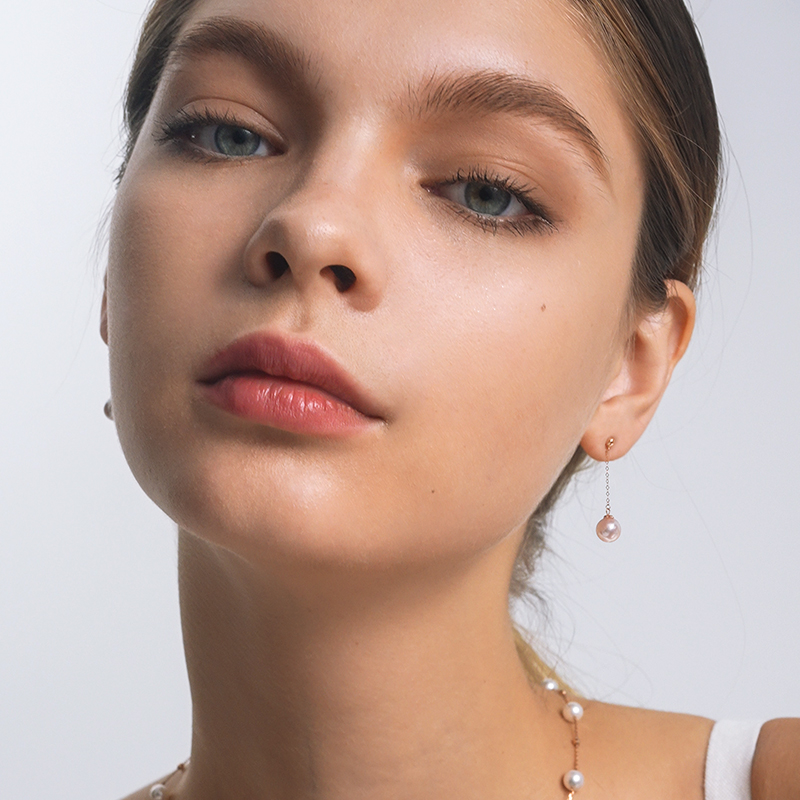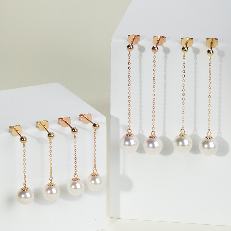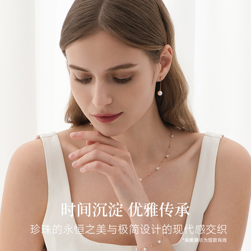 GiO珠宝 Akoya海水珍珠耳钉女气质长款耳线18K金耳饰耳坠节日送礼