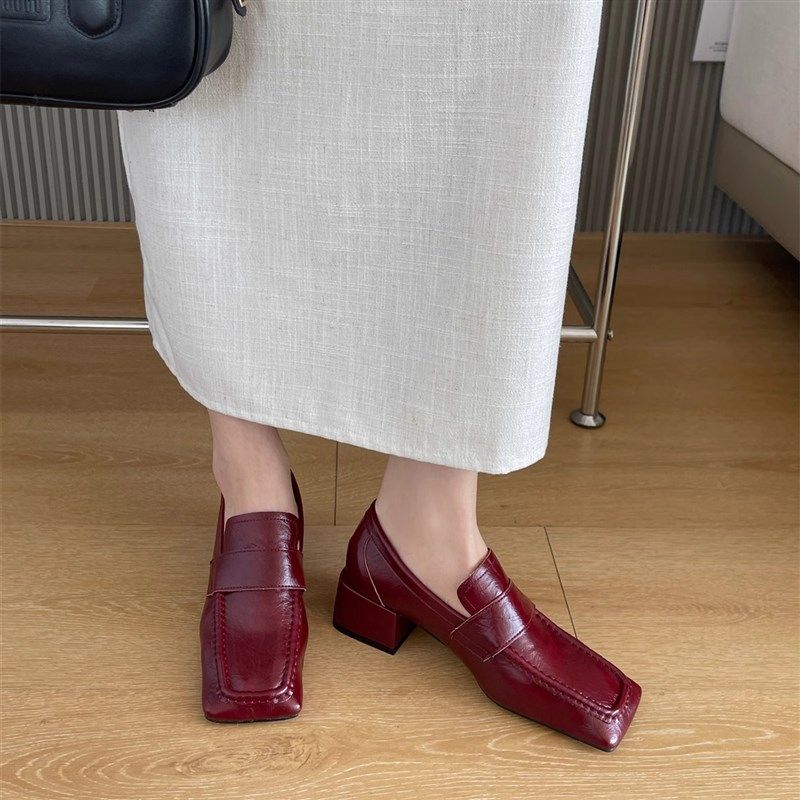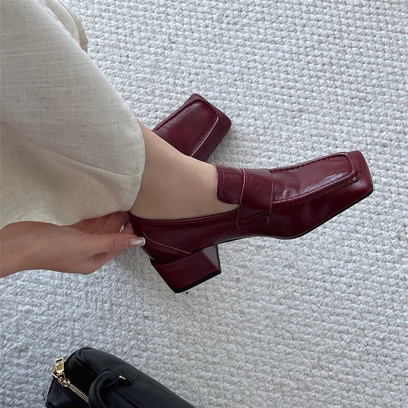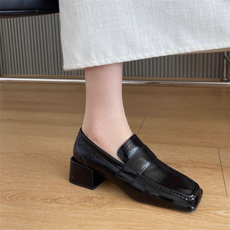 2025春季新款复古英伦风粗跟中跟单鞋时尚百搭方头小皮鞋高跟女鞋