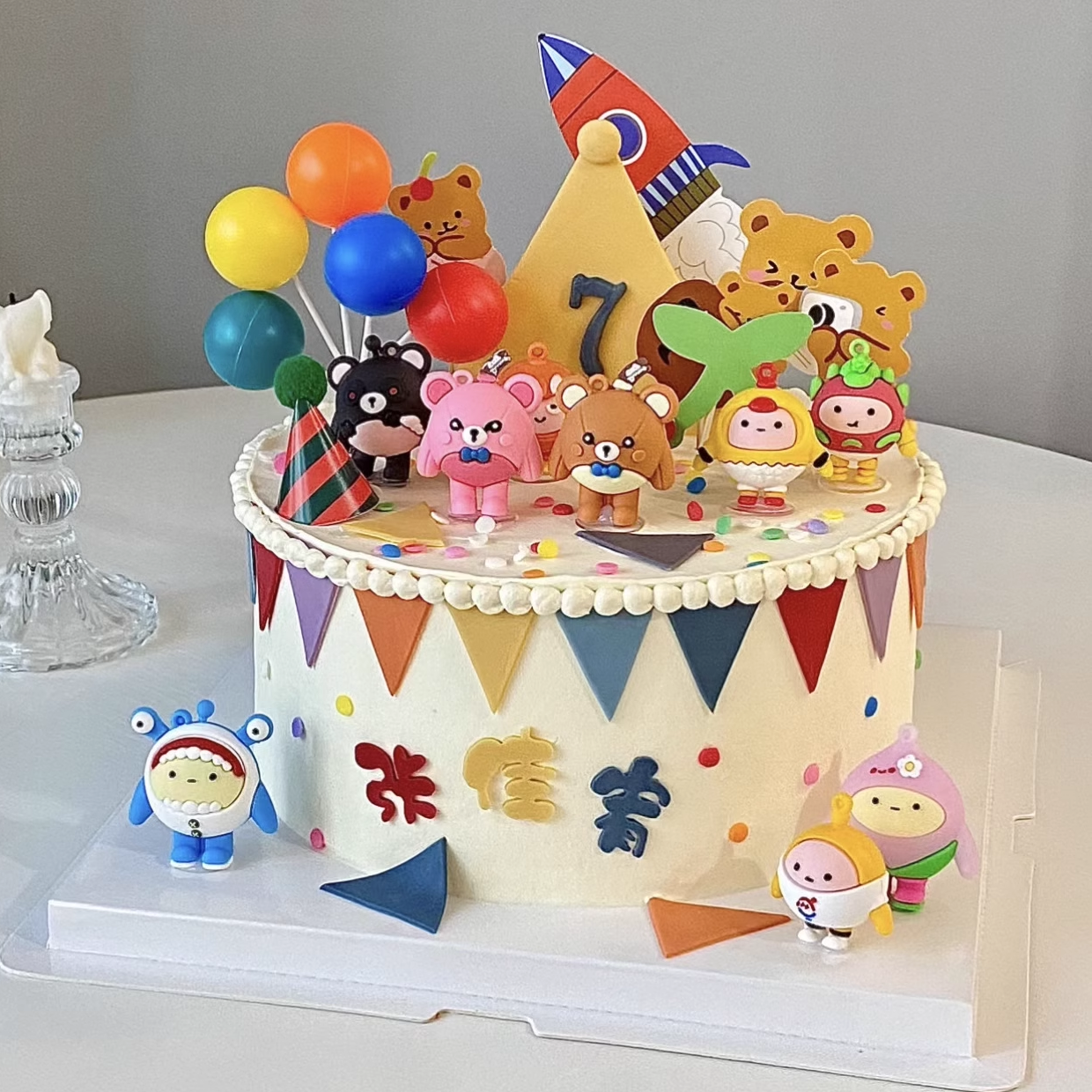 网红蛋仔派对蛋糕装饰卡通仔仔熊失心熊粉仔熊小熊玩偶生日成都