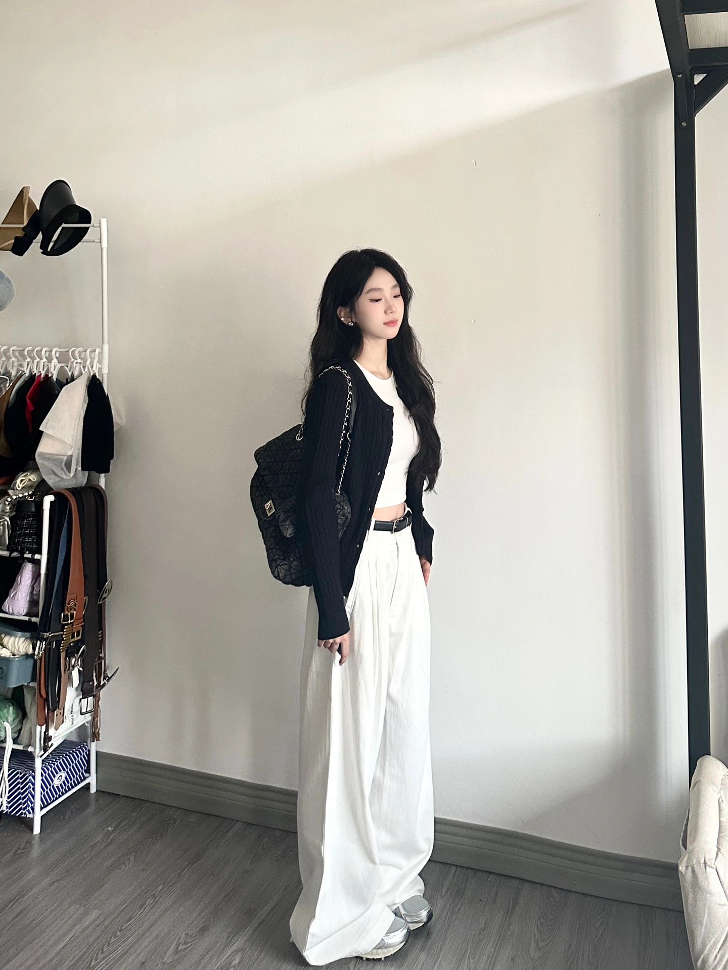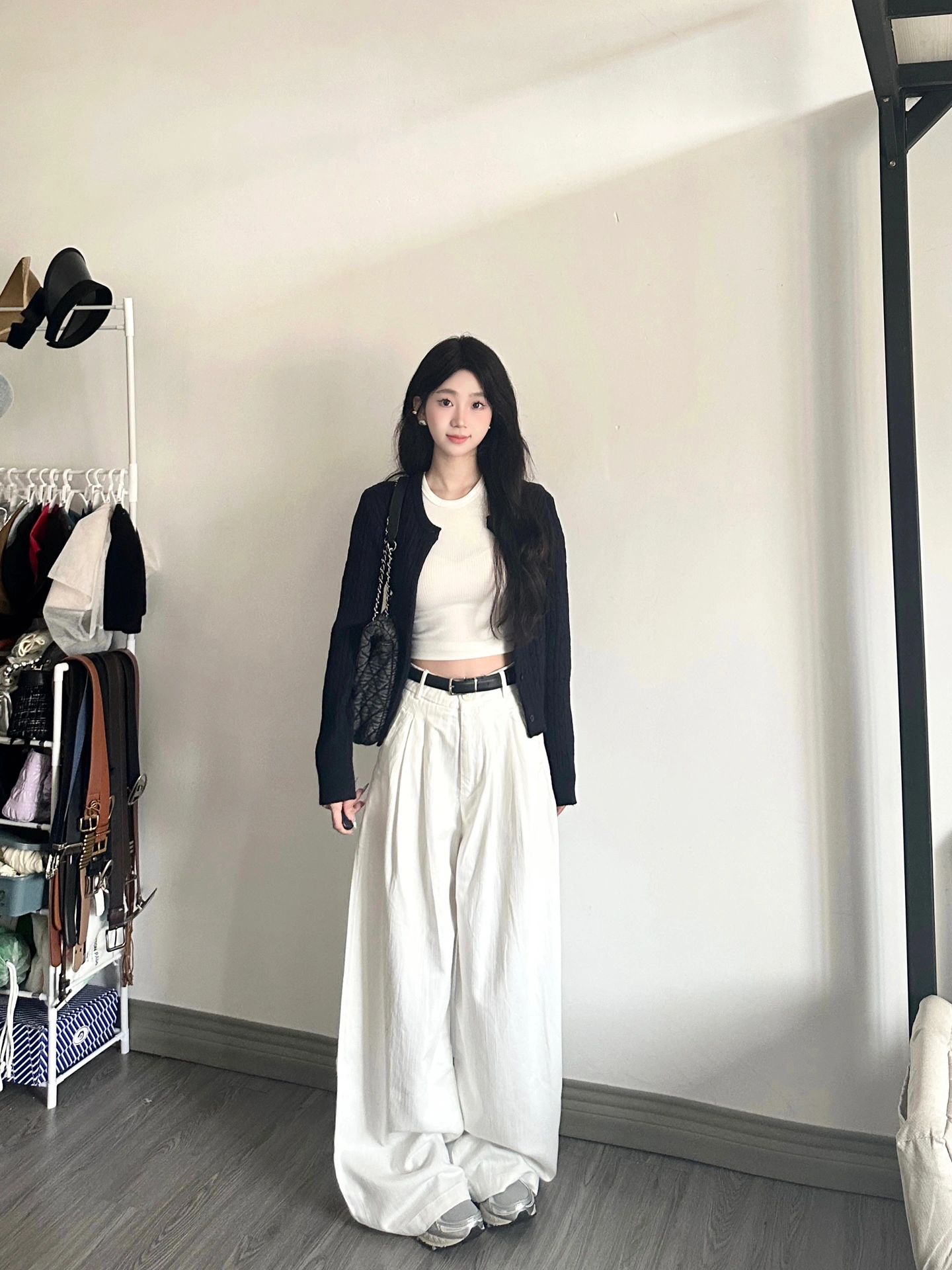 大码美拉德穿搭白色牛仔裤女秋冬高腰显瘦垂感宽松阔腿拖地长裤子