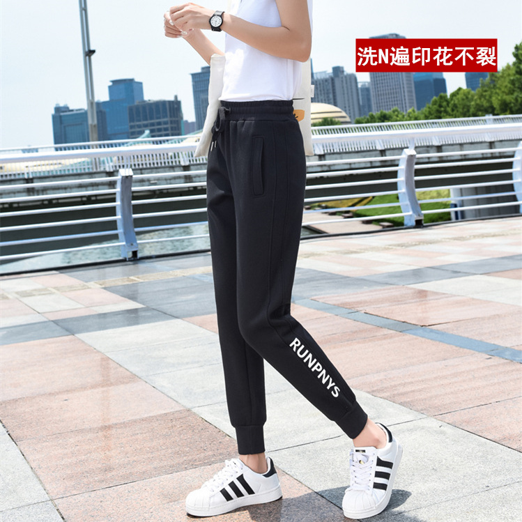 2025秋冬新款女裤运动休闲裤子学生宽松束脚纯棉白色厚款小脚卫裤