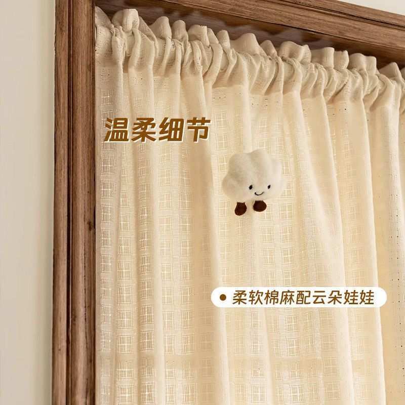 日式纱帘飘窗窗帘小窗户短帘卧室厨房隔断帘门帘遮光帘法式田字纱