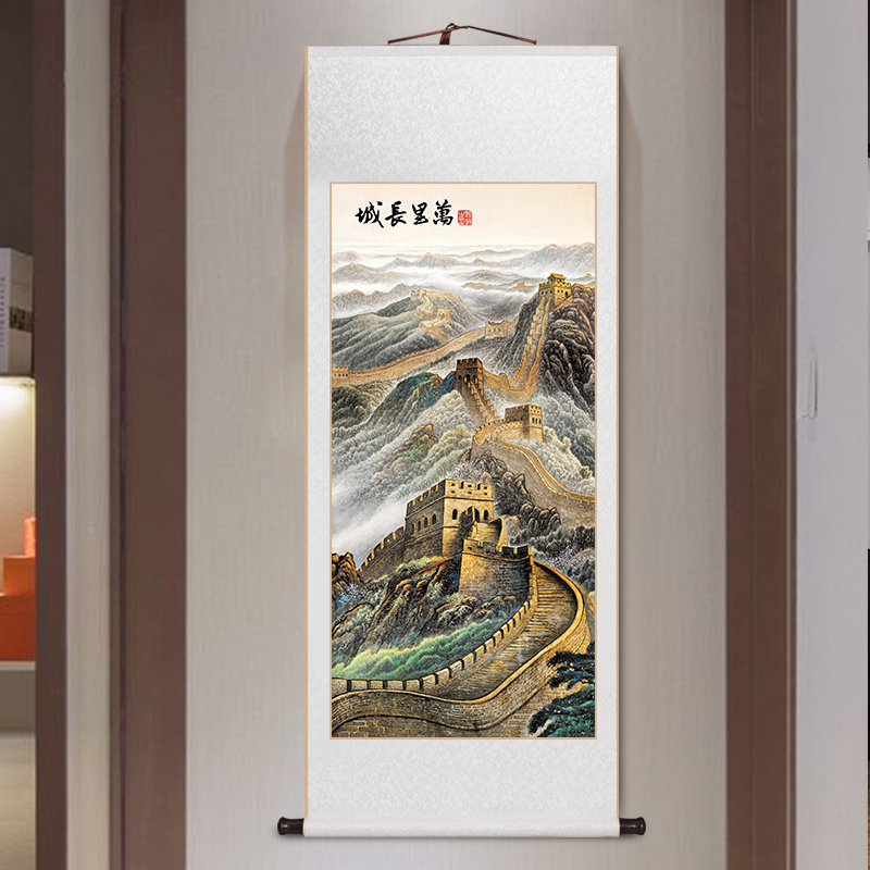 鸿运当头国画山水挂画竖版客厅玄关装饰壁画办公室靠山图卷轴字画