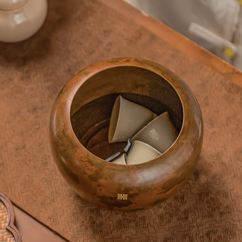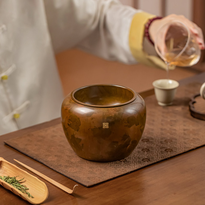 中式纯黄铜建水茶洗大容量废水缸