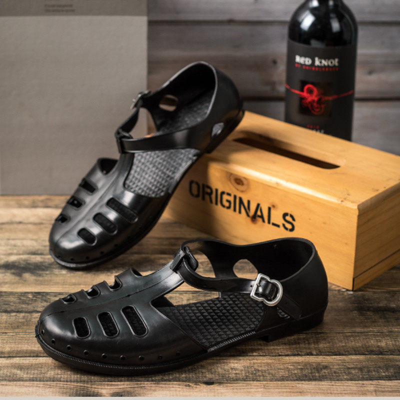 解放鞋男士夏季橡胶越南老式塑料复古怀旧表演军凉鞋包头洞洞鞋