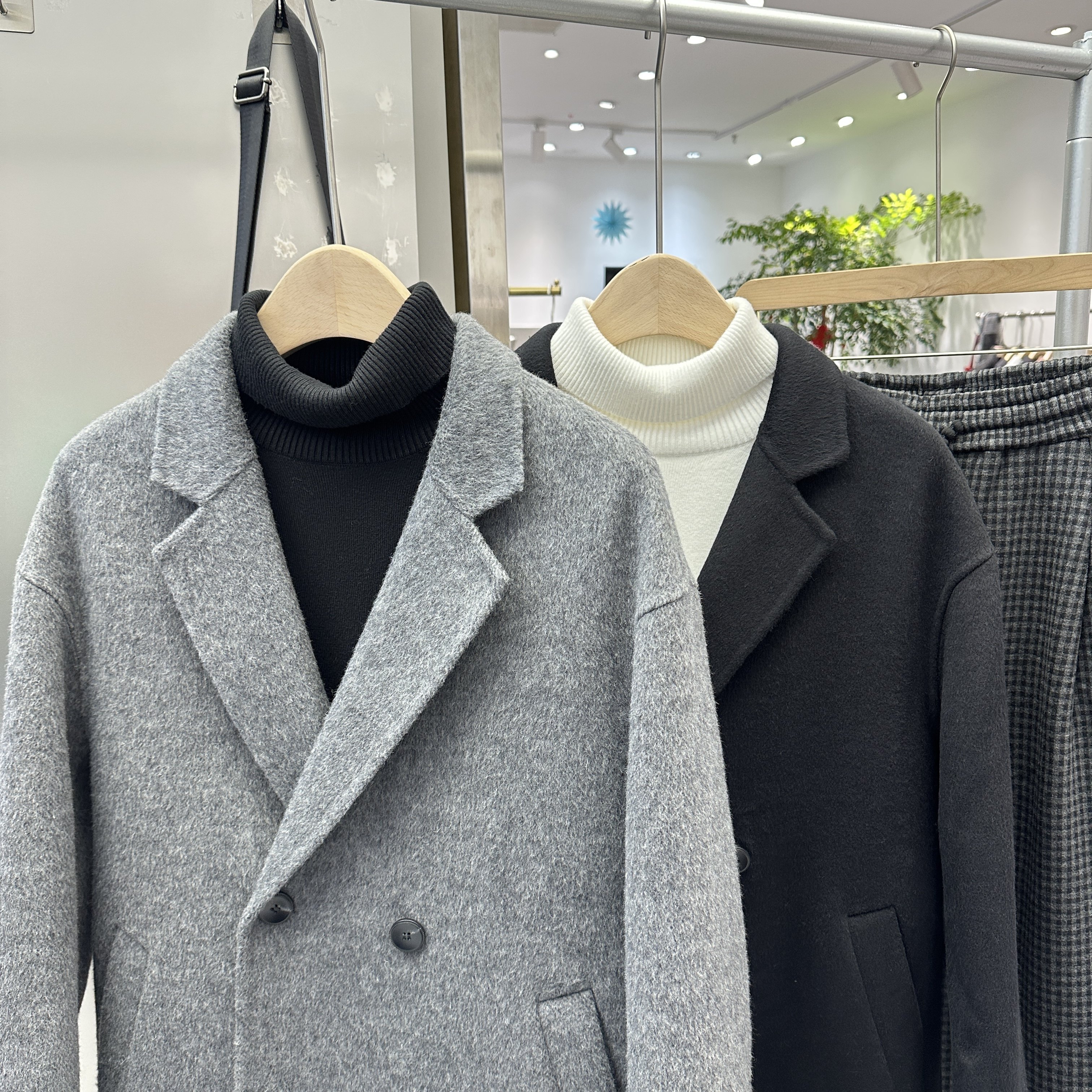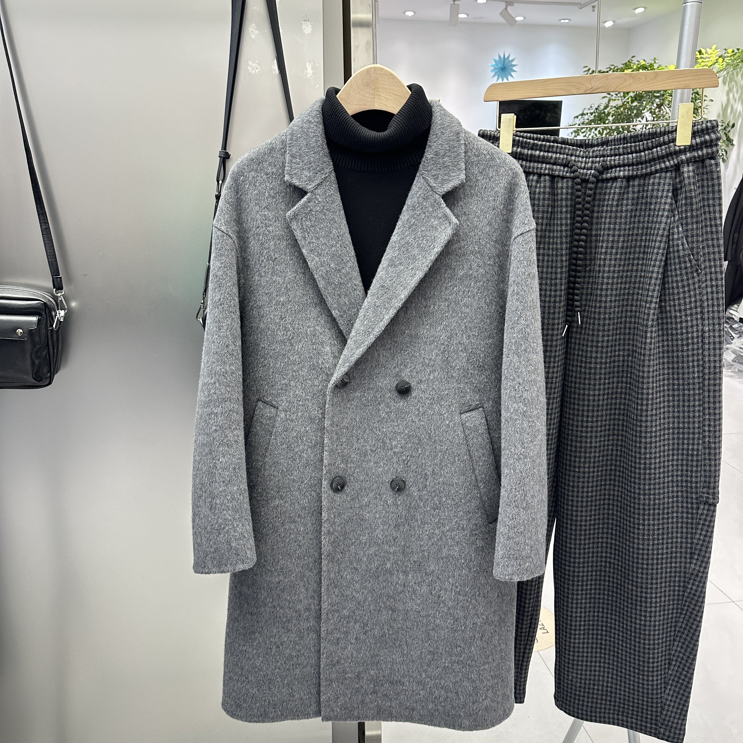 2025冬季新款双面羊绒男士长款过膝呢子外套潮流韩版青年毛呢大衣