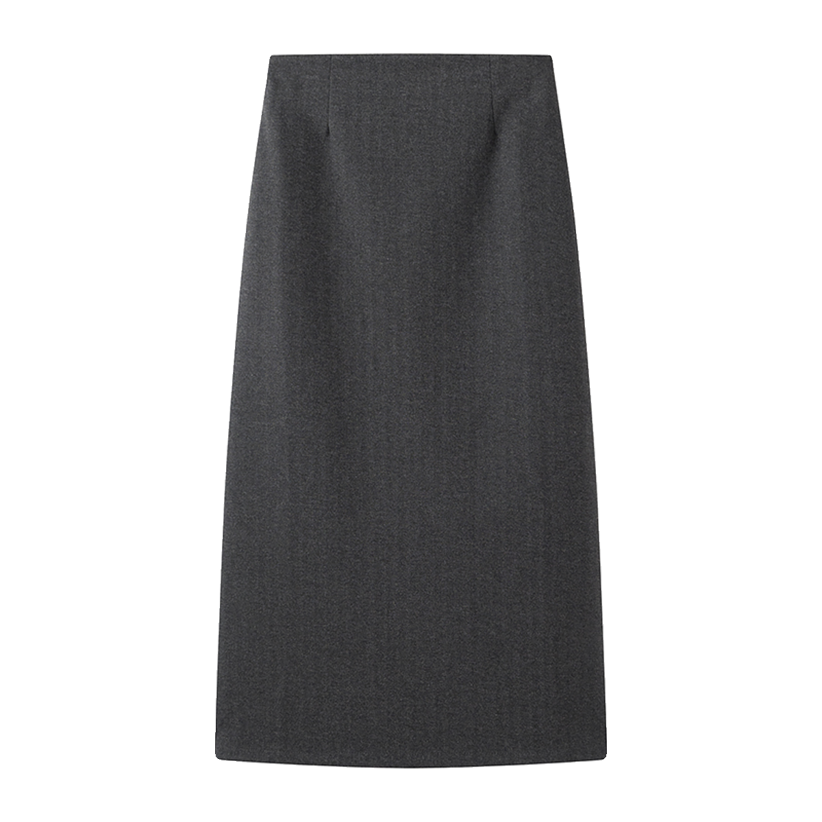 拉夏贝尔/La Chapelle冬季新款高级感毛呢半身裙开叉包臀裙半裙女