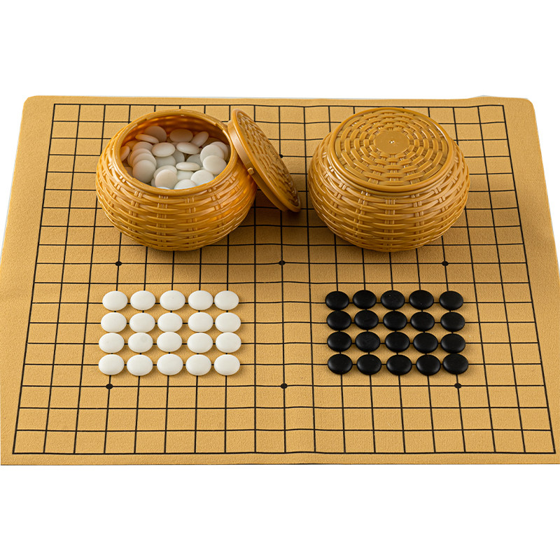 围棋五子棋套装儿童学生初学着折叠皮革棋盘标准19路实心仿玉棋子