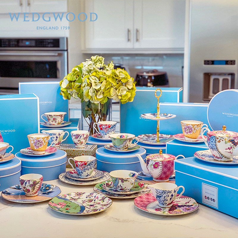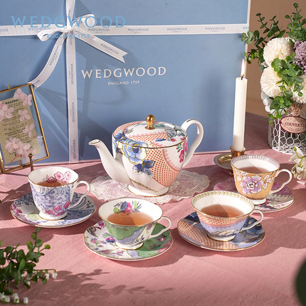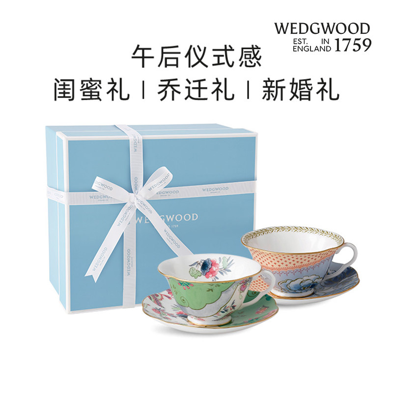 乔迁礼物 WEDGWOOD威基伍德花间舞蝶咖啡茶具套装骨瓷下午茶杯碟