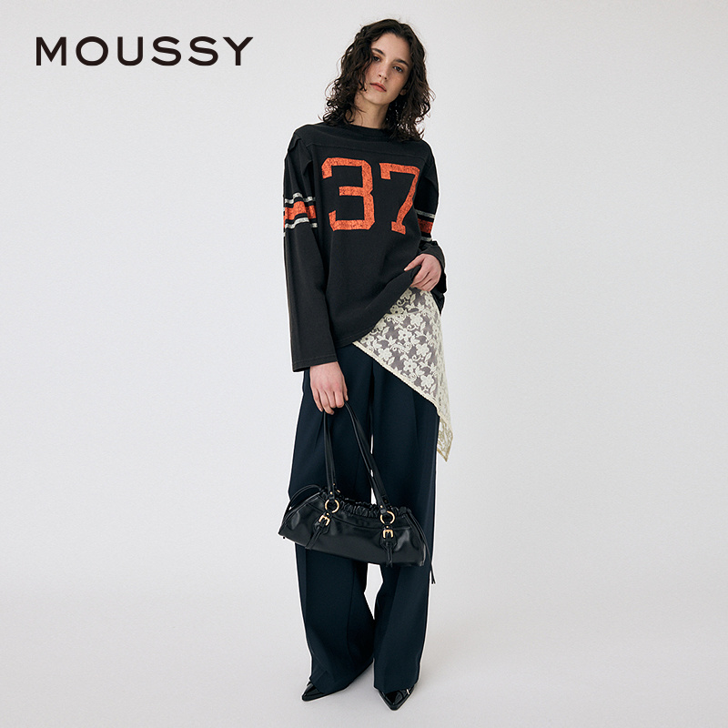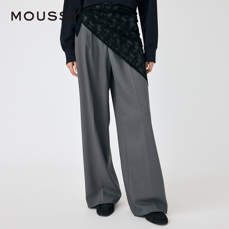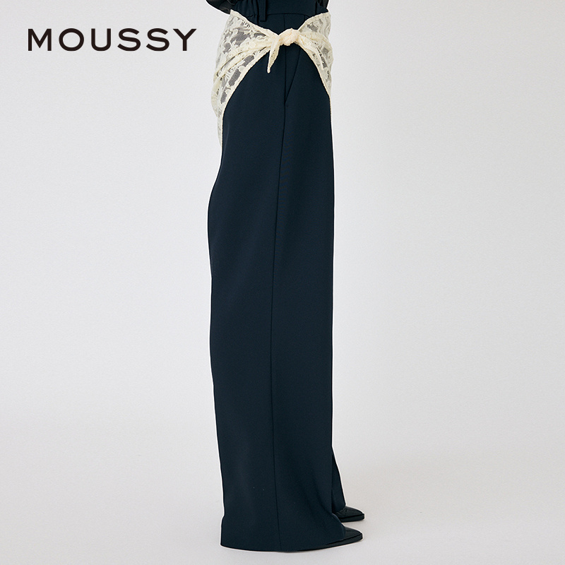 MOUSSY 2025春季新品两件套蕾丝西装裤垂感休闲裤女010ISH31-6801